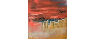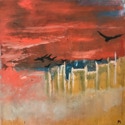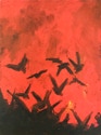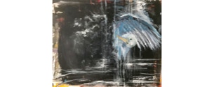 The subjects Miner paints include her series of ravens and crows, other animals of flight, and the figure. Miner’s use of dramatic changes in value from black to white along with primary and tonal colors, make abstract compositions of both representational and psychological observation.