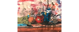 Miner works mainly in oil, and also with mixed media. Acrylic and house paints will often find their way into her work. If she cannot find her brushes, she will use whatever is laying around, being very resourceful and feeling that the key is to create, however it comes to pass.