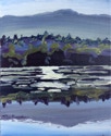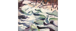 MC Noyes is known for his work done with oil paint in direct observation of the landscape. Noyes’s process of completing a painting in one sitting is influenced by the artist’s study of ink wash on paper. Noyes’s work uses gestural brushstrokes and quickly applied layers of paint to show abstract compositions of represented landscapes. Noyes’s work focuses of the artists’s observation of the movement, patterns, and light of the landscape. The artist finds compositions often lacking a clear horizon and uses thick strokes of paint to continually brings the viewers eye back to the tactile surface of the canvas.