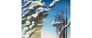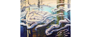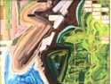 The exploration of Deconstructed Earth is done through four concepts, Atmosphere, Water, Land, and Life, each with its own series of paintings. Atmosphere focuses on this element as a natural resource, and the effects of human colonization on it. Water is a vision of a water-centric civilization. Land is an investigation into the patterns of colonization created by humans on the land of this earth. Life is about seeing this planet as a single living being, with life support systems and organs, all working together to provide a way to hold water; without which there is no life.”
