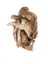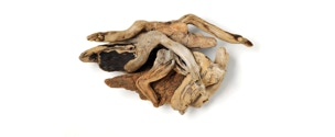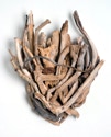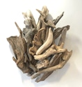 I discovered an endless collection of river-washed wood in a bend of the Connecticut River near the Railroad Station about 25 years ago. My friend, Robert McBride, who lives across the street from the site had been using if for his sculpture and encouraged me to take a look. I finally followed his advice and was overwhelmed by the amount of wood available. I was also impressed by the random way it piled up on the rocks after flowing over the dam. This pattern created by water power has greatly influenced the way I use the wood in my work, trying to recreate, in a more organized fashion, the chaotic energy of wood limbs and stumps thrown onto the river bank.