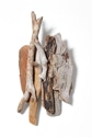 Phyllis Rosser constructs sculptures made of wood found along the shores of the Connecticut River. Rosser’s compositions reflect the natural way the wood is found, honed to its essence by water and time.