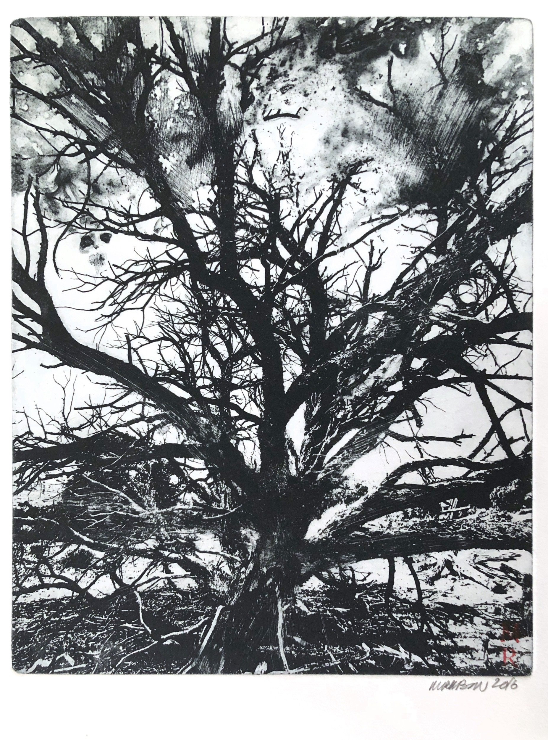 Solar Plate Etching, with Akua Inks on paper