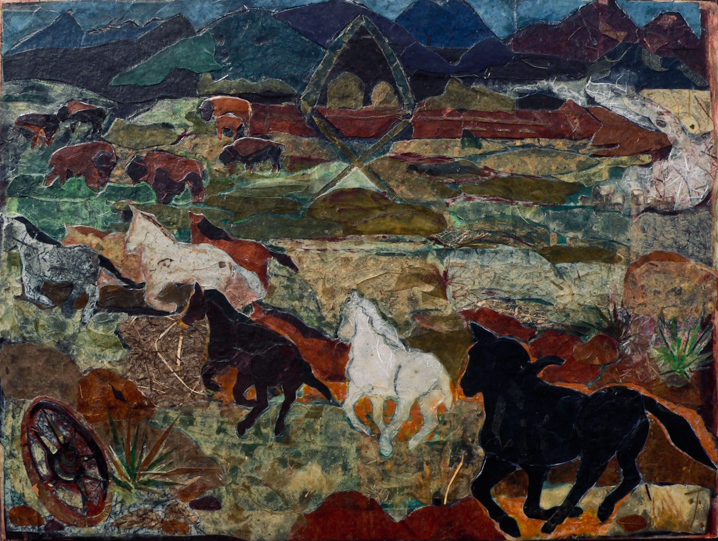 encaustic medium and paper on birch wood panel, 24 x 18 in