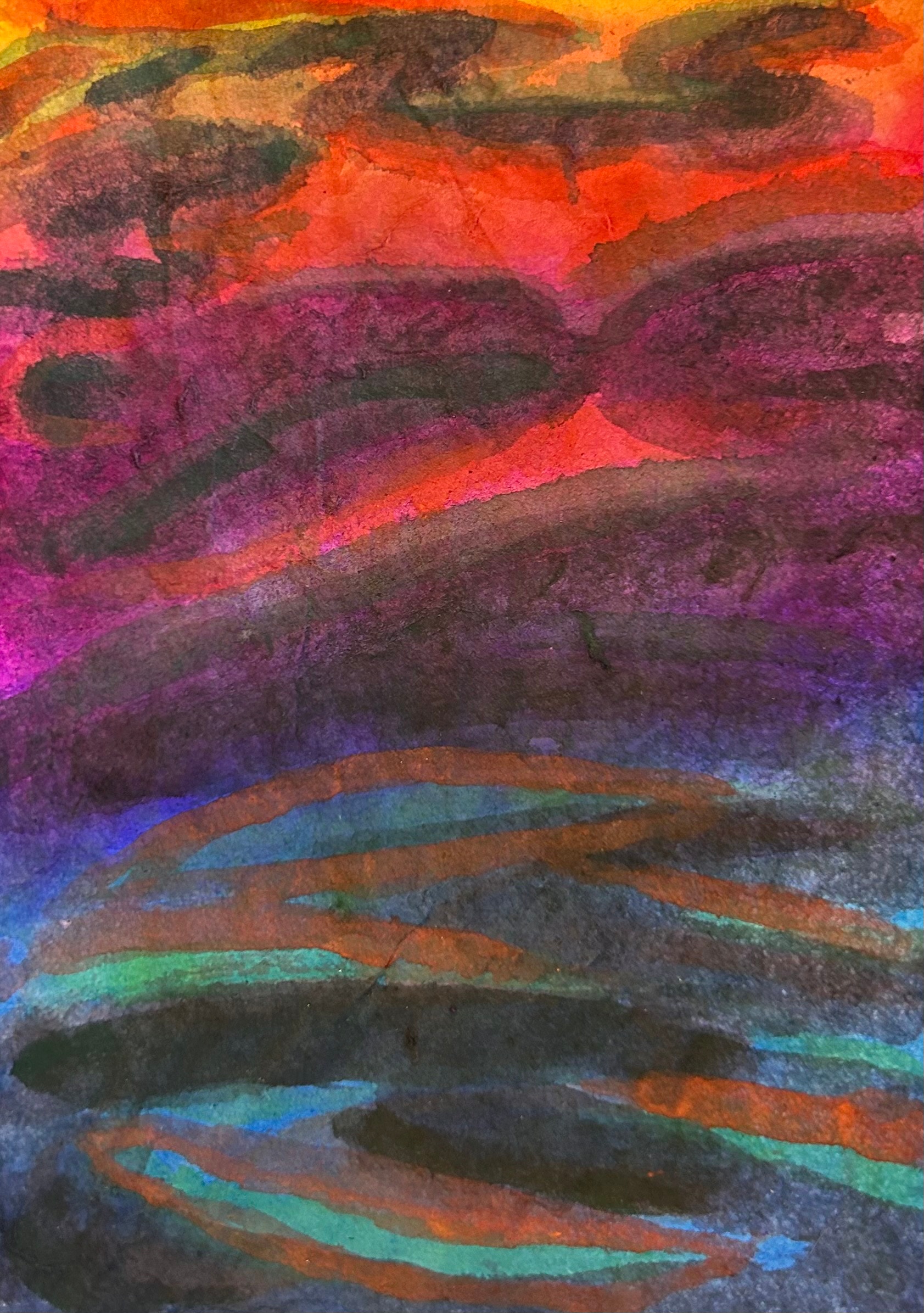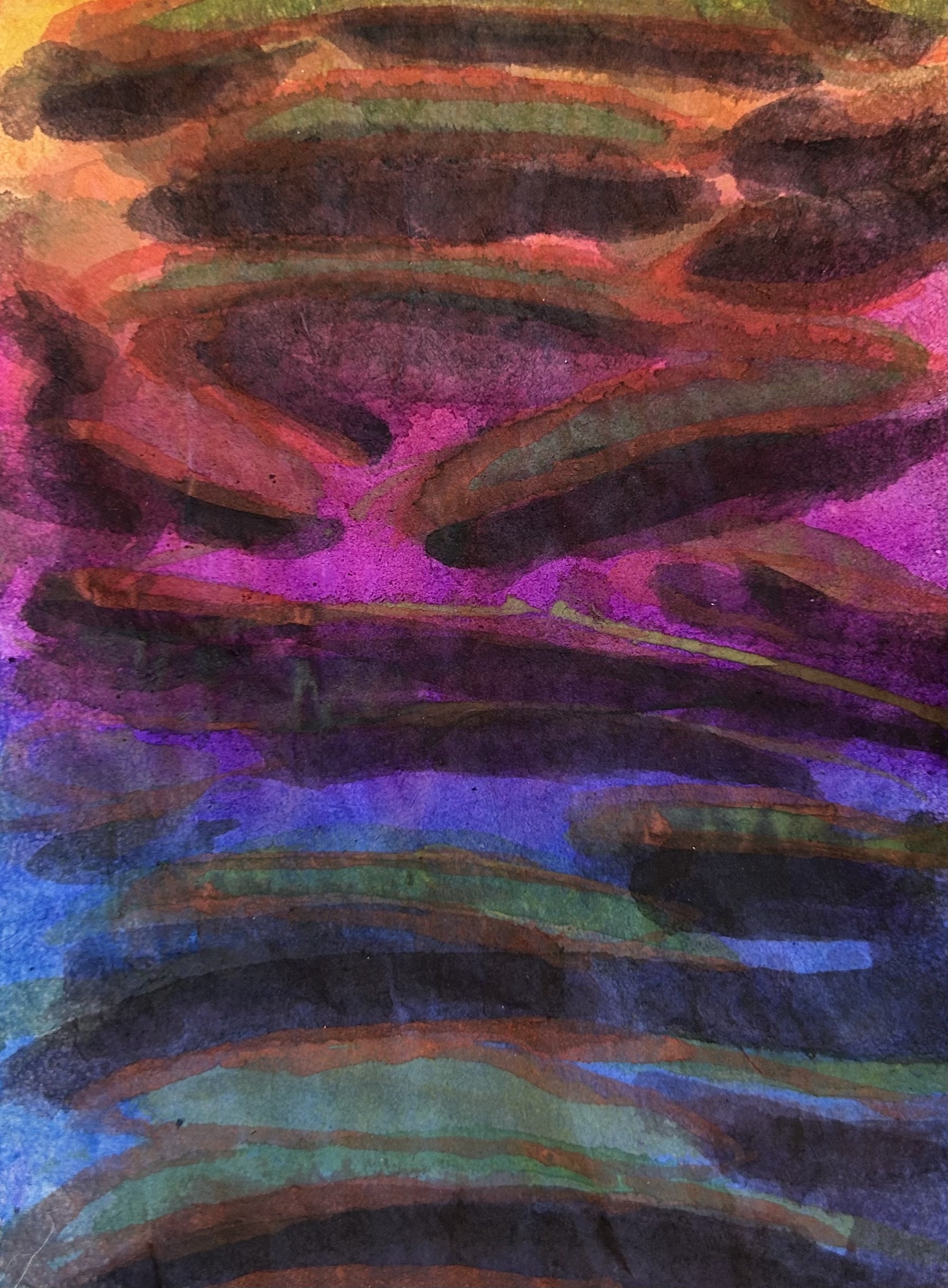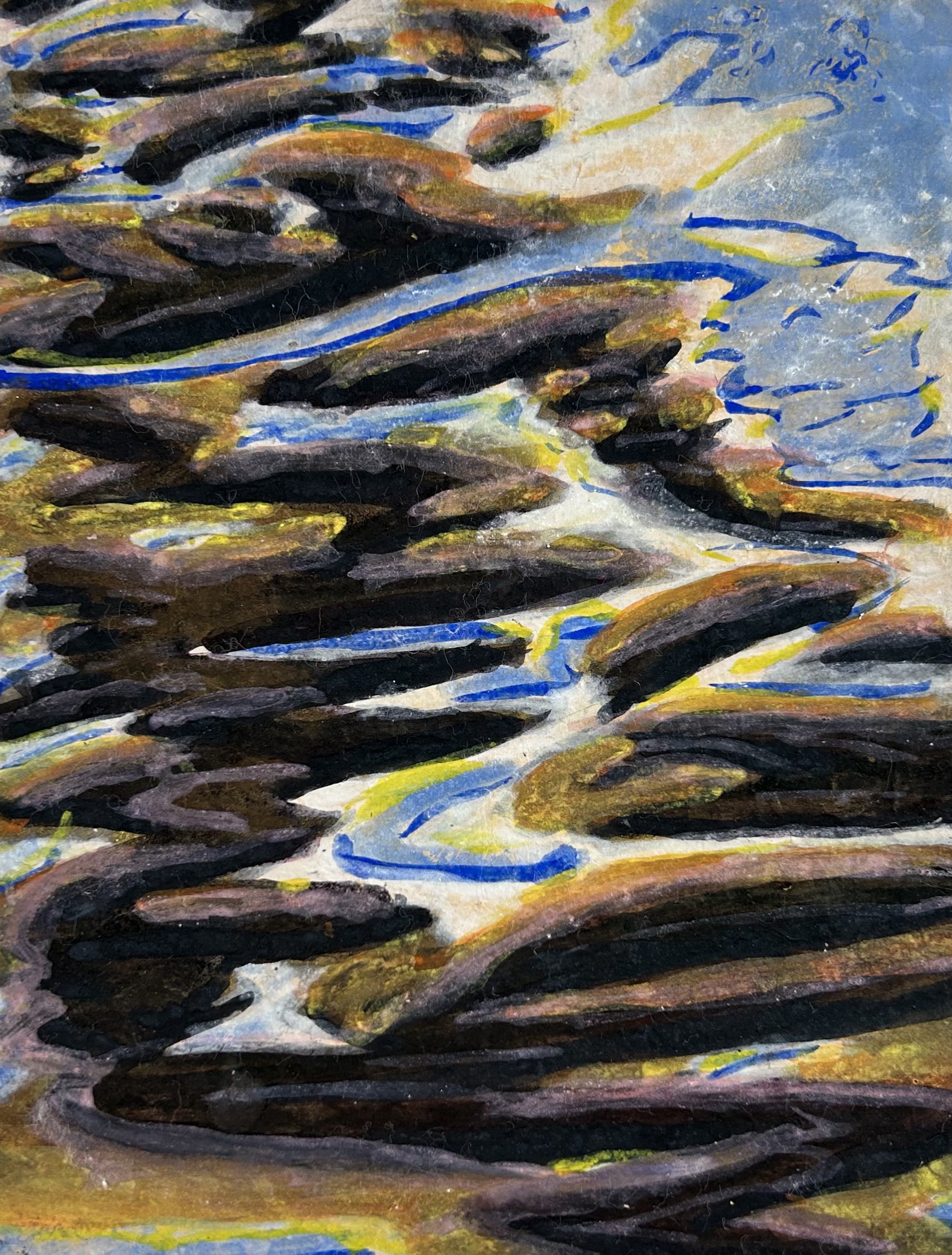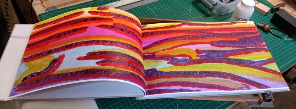 powdered pigments hand mixed with animal glue on handmade single weight single weight raw Mulberry paper, mounted on Mohab archival paper and stab bound as a handmade eighteen page single edition book of original artwork