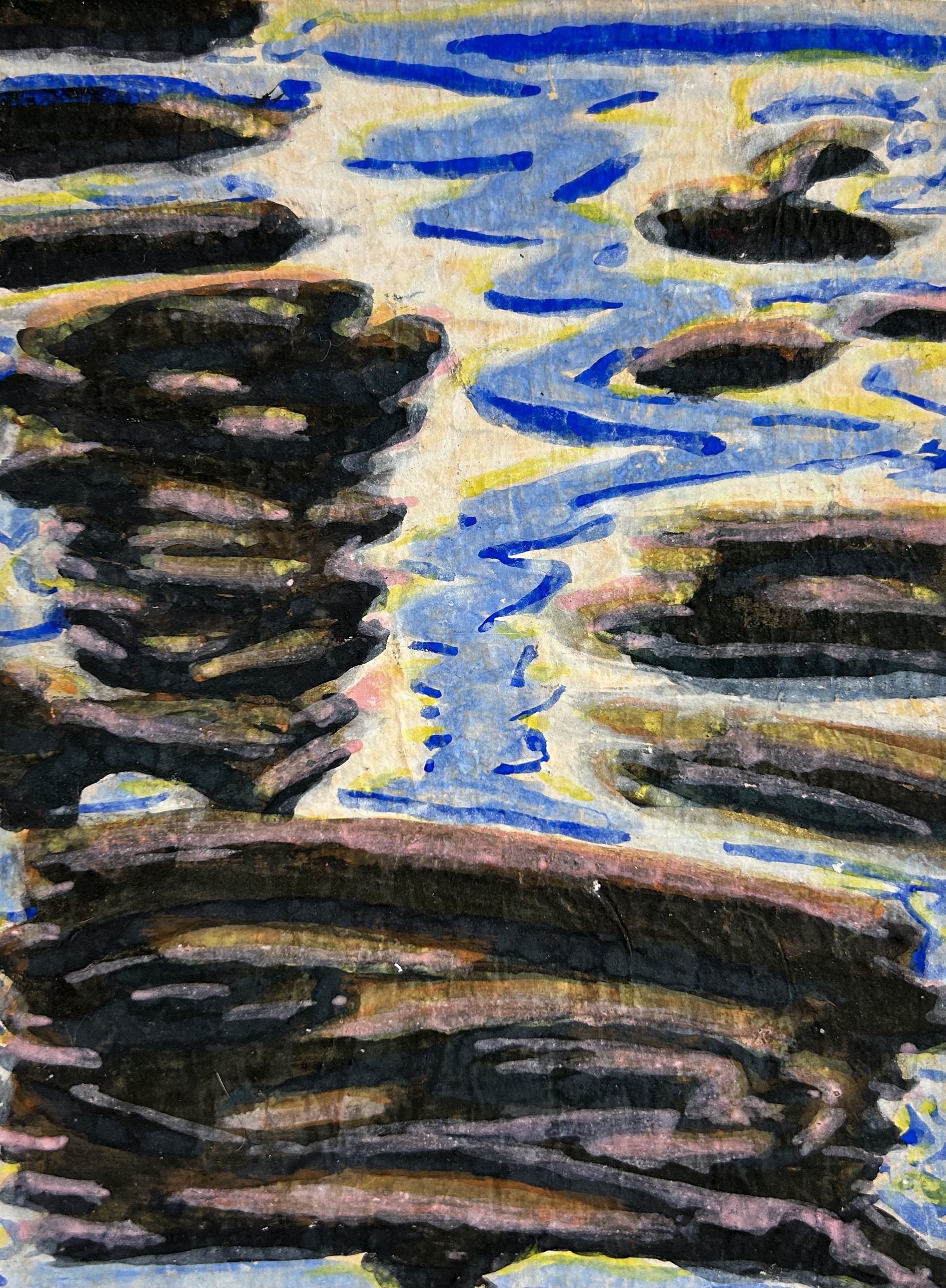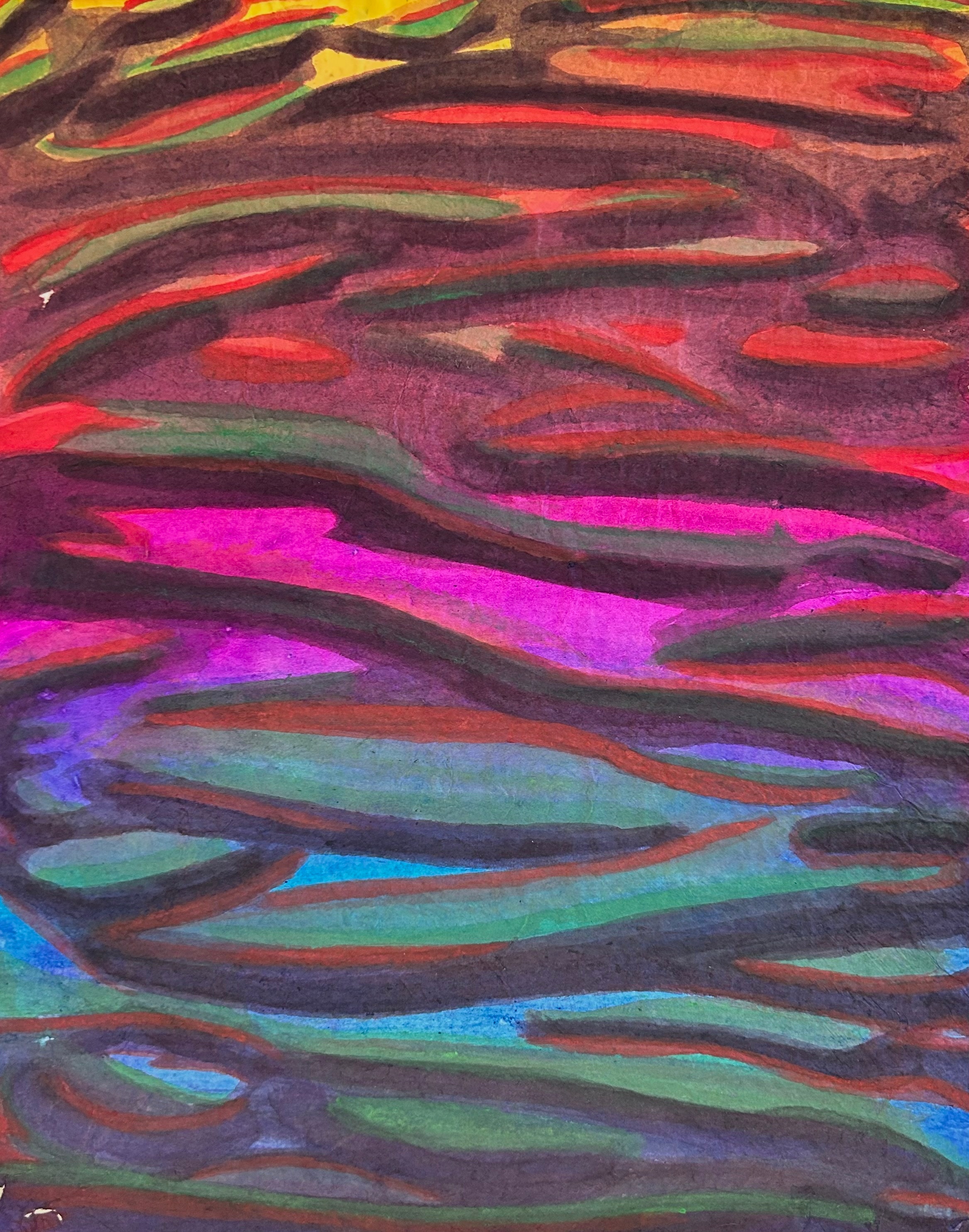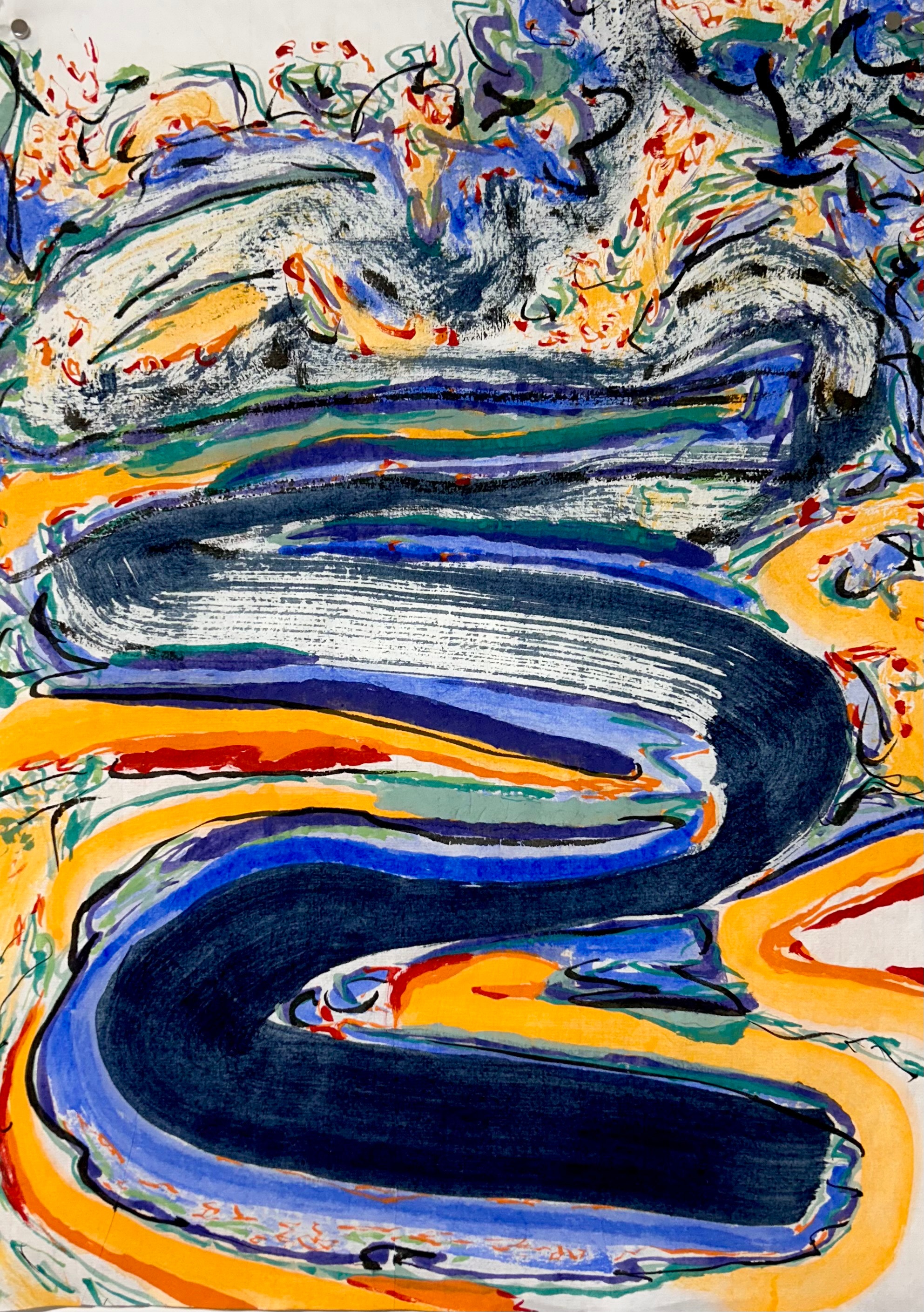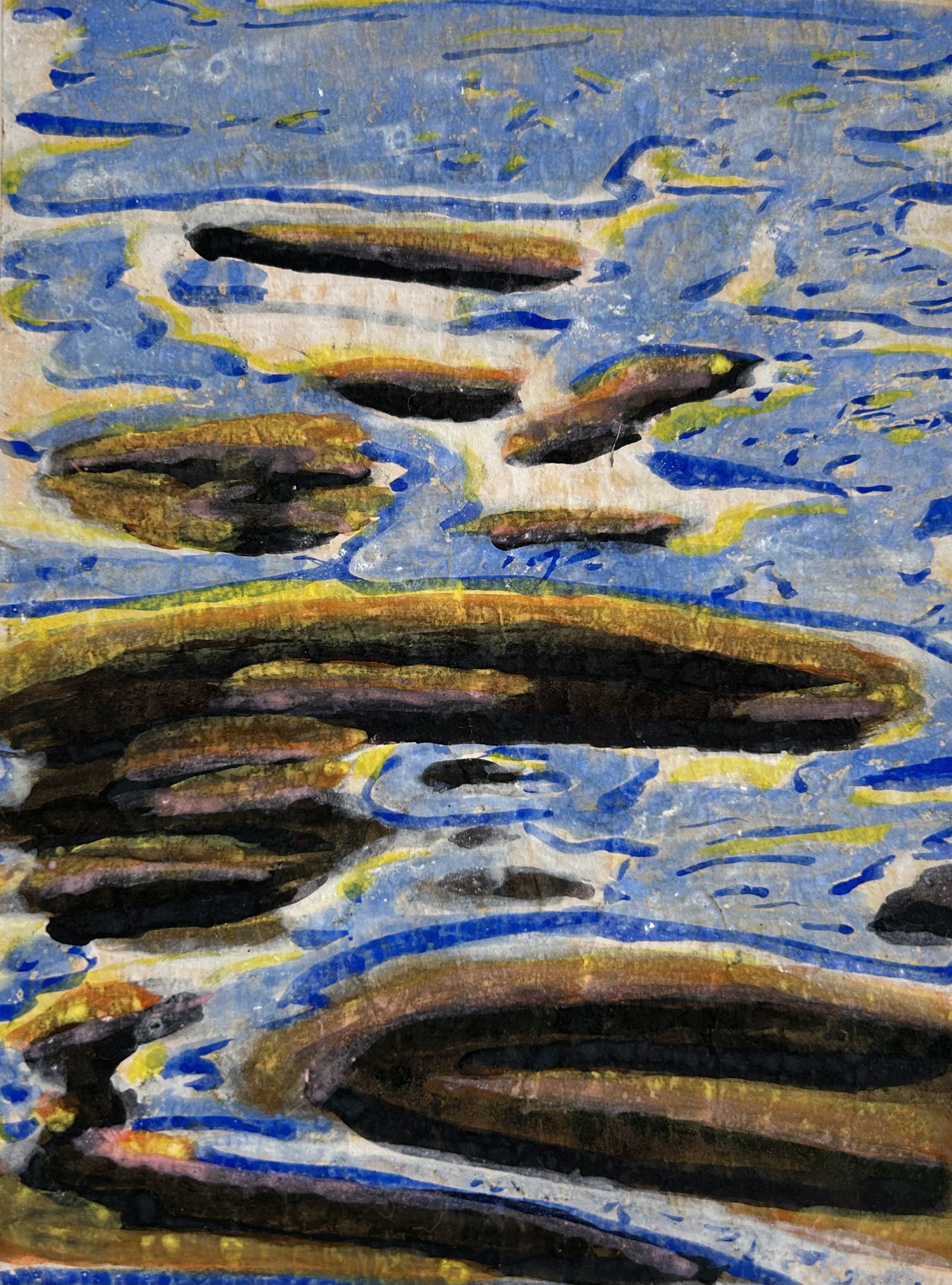 powdered pigments hand mixed with animal glue on handmade single weight single weight raw Mulberry paper, mounted on Mohab archival paper and stab bound as a handmade eighteen page single edition book of original artwork