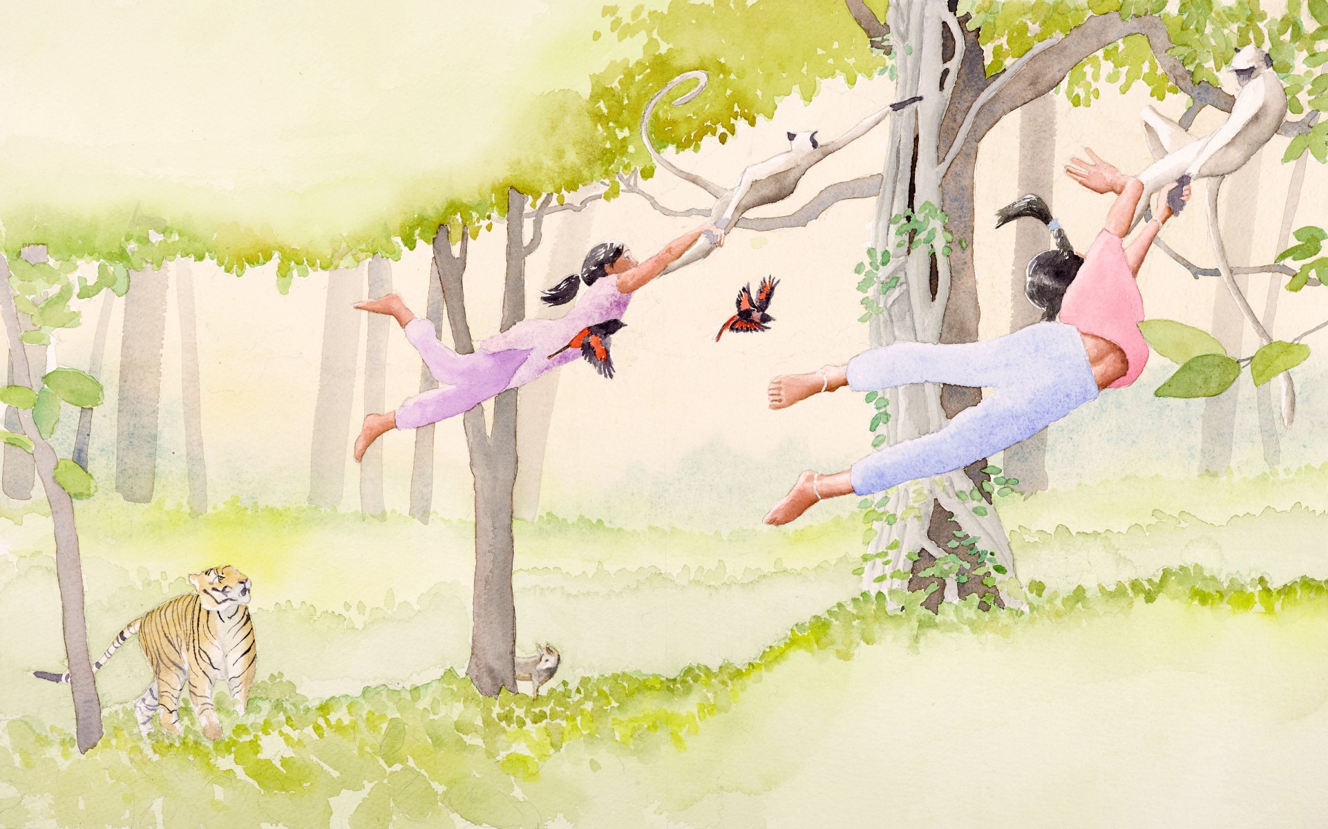 Charles Norris-Brown’s concerns for the endangered tigers and the villagers who live between the densely-populated plains of Uttar Pradesh, India and the hills of Nepal, is what first led him to turn to his Art. Norris-Brown uses his art as a means of communicating complex matters through visuals and story narratives. Through a close relationship with the Tharus peoples, Norris-Brown saw that deforestation and persistent droughts were creating severe conditions- devastating to the native plants and animals of the region, as well as for the peoples of the villages. To best protect the tiger and the people, during several journeys to India doing fieldwork, Norris-Brown created an illustrated children’s book to explain how their shared plight was caused by human-wrought ecological changes in the land. This area, known as the Terai, is a region that juxtaposes farms with wooded areas, including some of the best-known tiger reserves of India and Nepal. Now, Did Tiger Take the Rain? fulfills the artist’s mission through Pratham Books, originally conceived to “put a book in every child’s hand.” For the past fourteen years, utilizing modern phone and internet technology as well as traditional printed materials Pratham has translated and distributed over 30 million books to underserved, impoverished and remote communities in India.