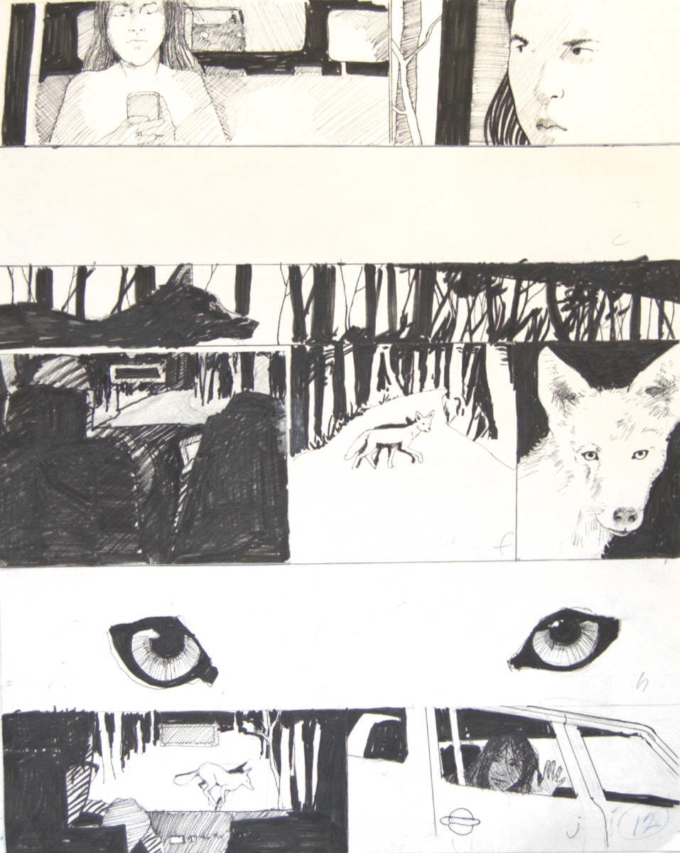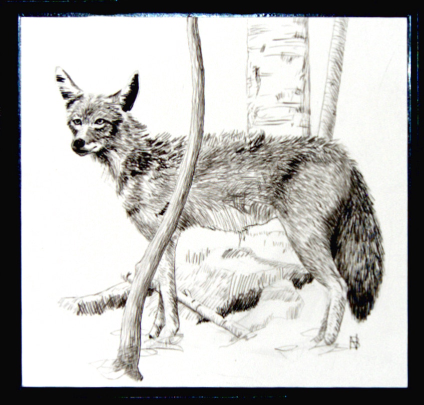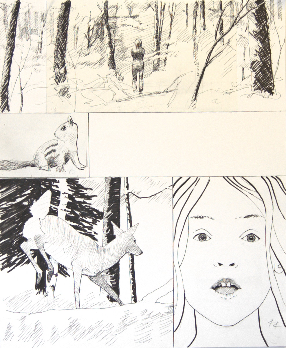 The artist’s second book, Thunder Basin, a graphic novel geared towards an older child reader, is a work in progress. LISTEN TO THE WIND shares a collection of studies and finished work in ink, watercolor, charcoal and mixed media, along with a selection of multi-celled, draft pages from the graphic novel offering a unique view of the artist's process in creating Thunder Basin. Here an American girl loses her beloved cell phone in the forest. Trickster Coyote picks it up and runs away with it—leading her to explore the forest, and ultimately, herself. This quest unfolds in the Thunder Basin along the west flank of Mt Mansfield, Vermont.