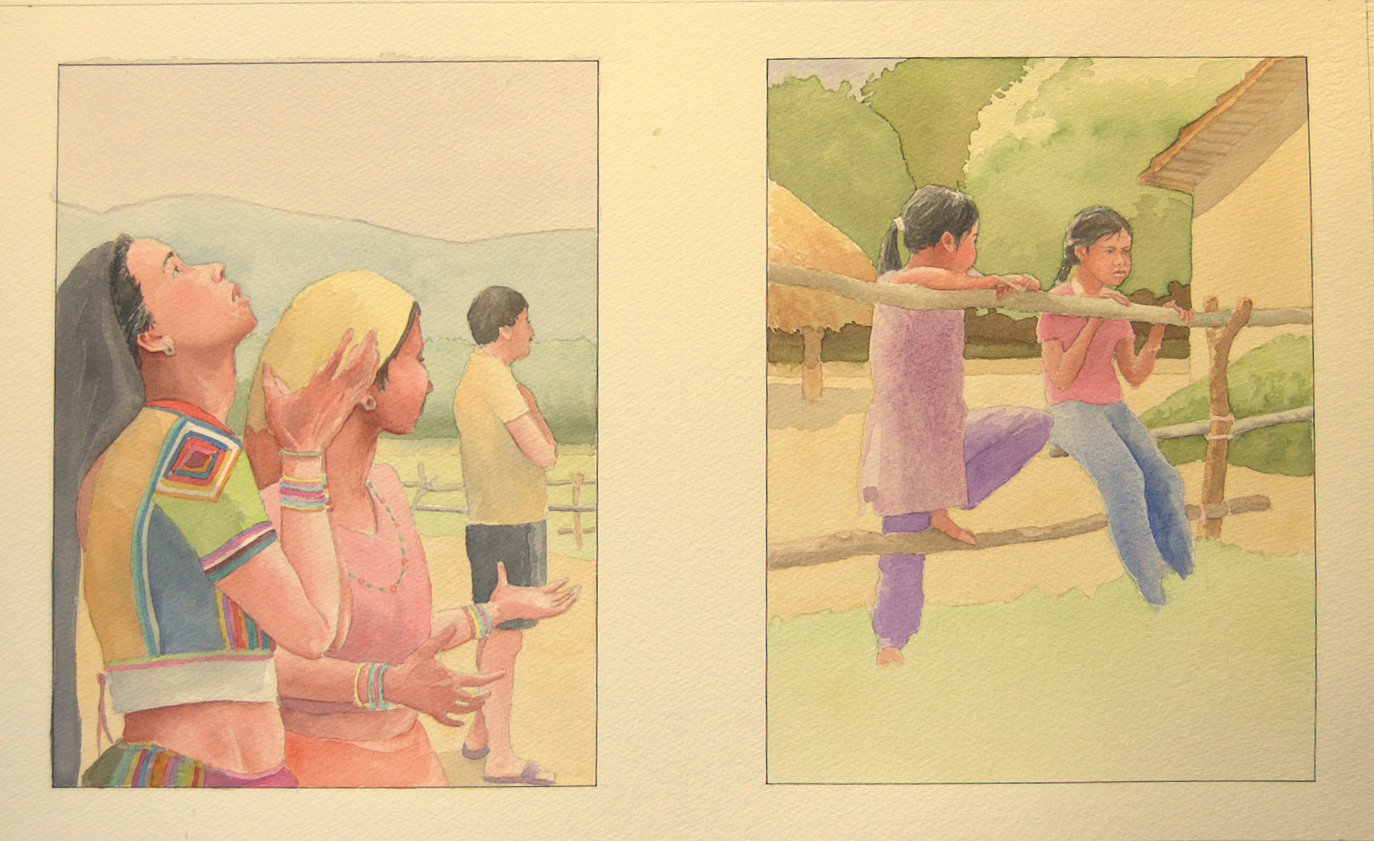 LISTEN TO THE WIND Charles Norris-Brown exhibits the artist’s and social anthropologist’s original paintings and drawings from two of his illustrated books, Did Tiger Take the Rain?, and Thunder Basin. Norris-Brown’s first book, Did Tiger Take the Rain?, first edition published by Green Writers Press 2016, is now offered on Creative Commons license by Pratham Books, India’s largest non-profit children’s book publishing house. To best protect the tiger and the people, during several journeys to India doing fieldwork, Norris-Brown created an illustrated children’s book to explain how their shared plight was caused by human-wrought ecological changes in the land. All the original watercolor illustrations from this publication are on exhibit.