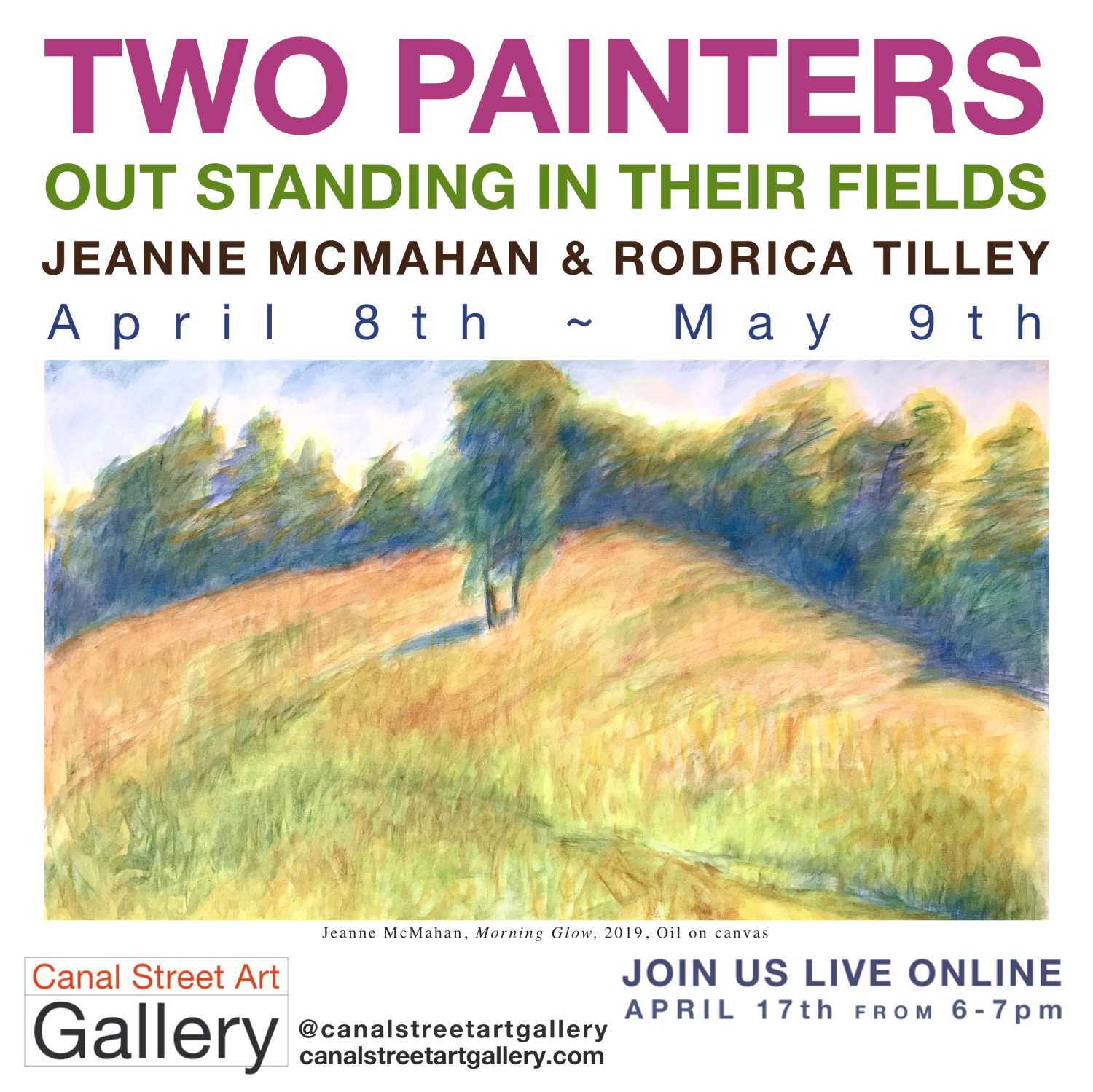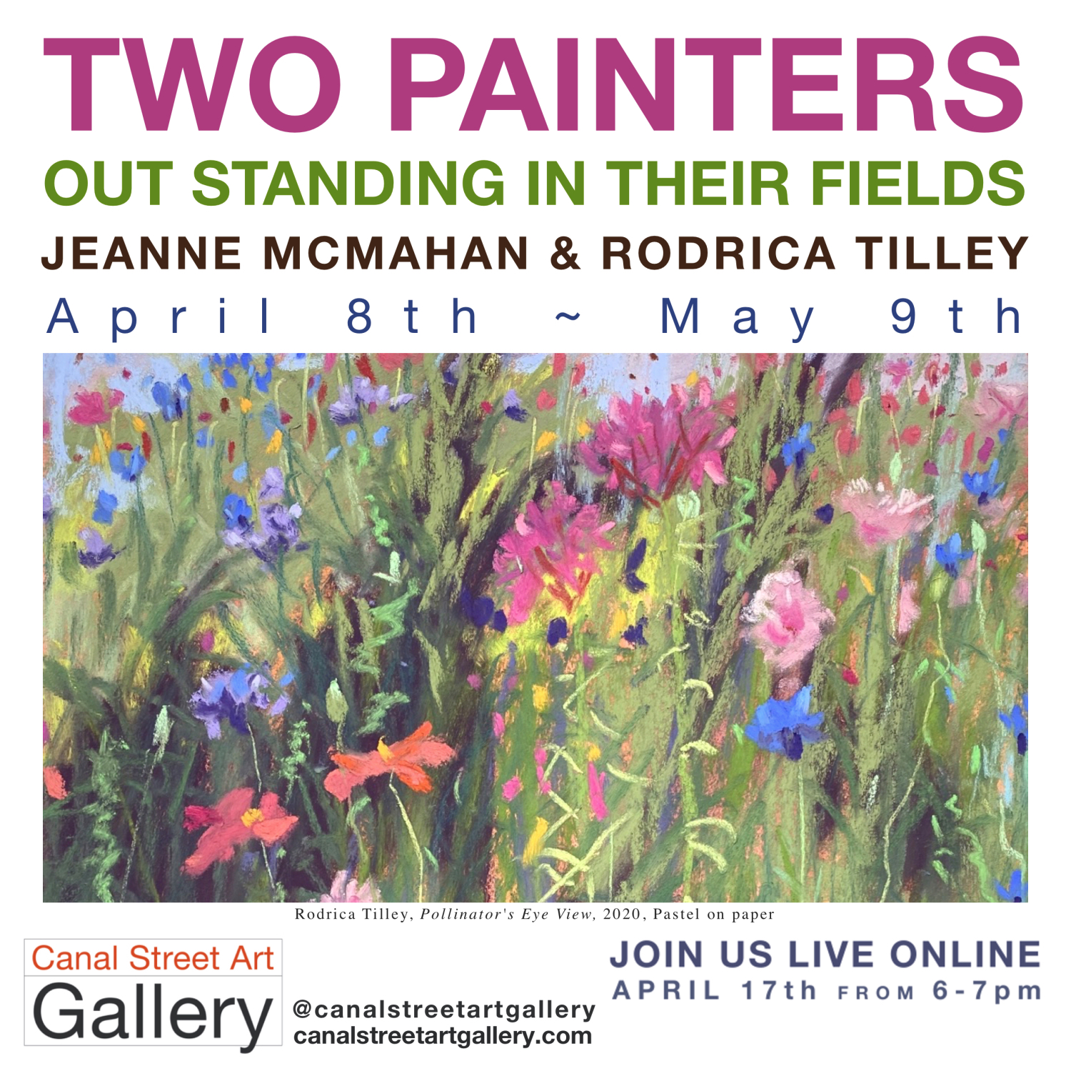 Canal Street Art Gallery presents: TWO PAINTERS OUT STANDING IN THEIR FIELDS Jeanne McMahan & Rodrica Tilley DUO SHOW Opens Online April 8th, on view digitally to the public through May 9th. All are invited on April 8th starting at 11:00am to visit the Gallery’s Inaugural Online Viewing Room, open all the time on our website.