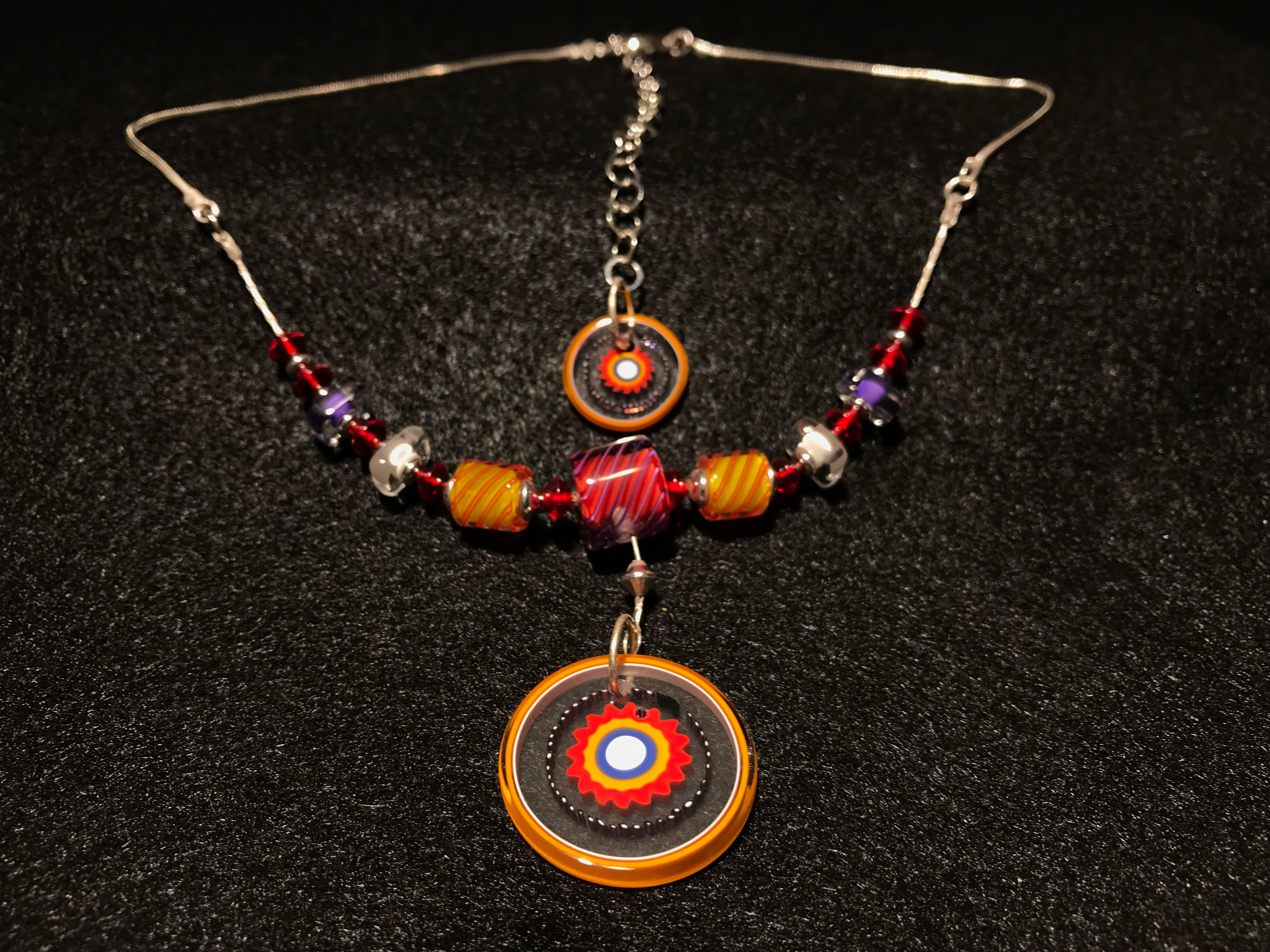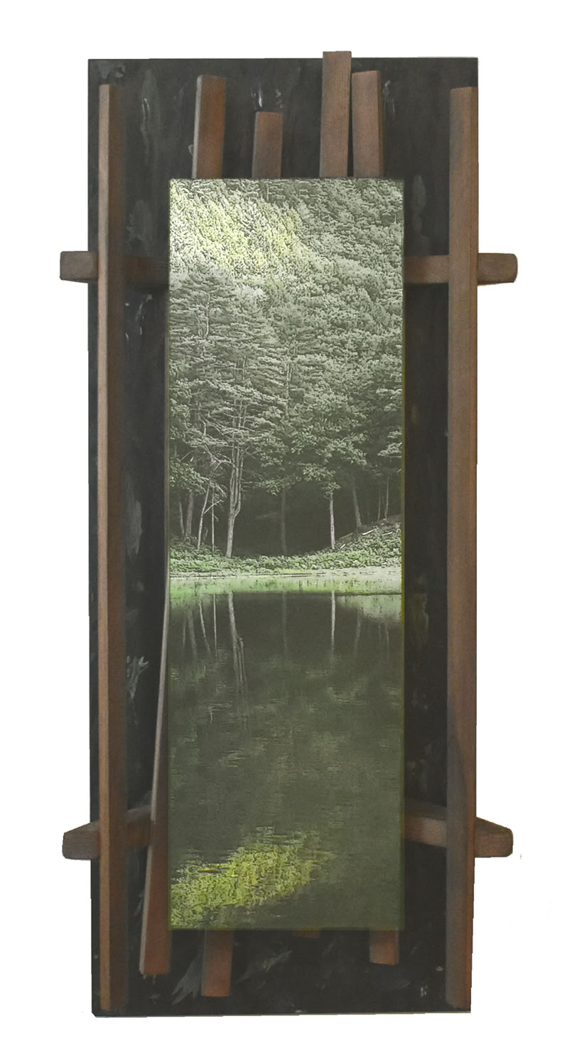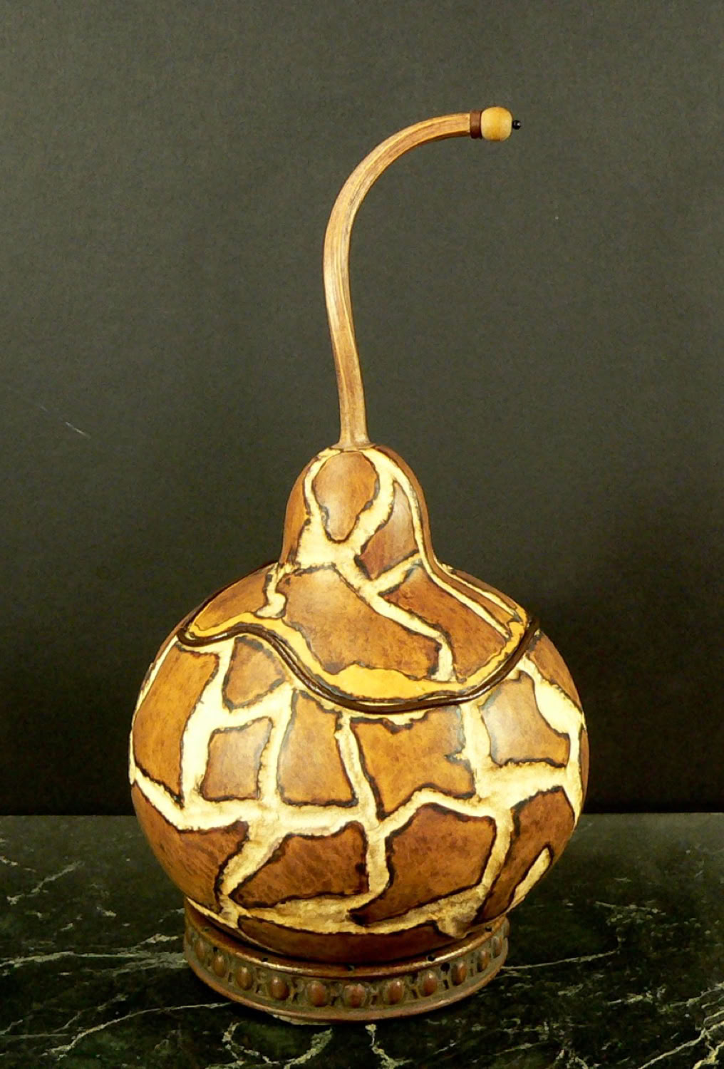 Handmade paper, dye, tile and metal base on mini bottle gourd