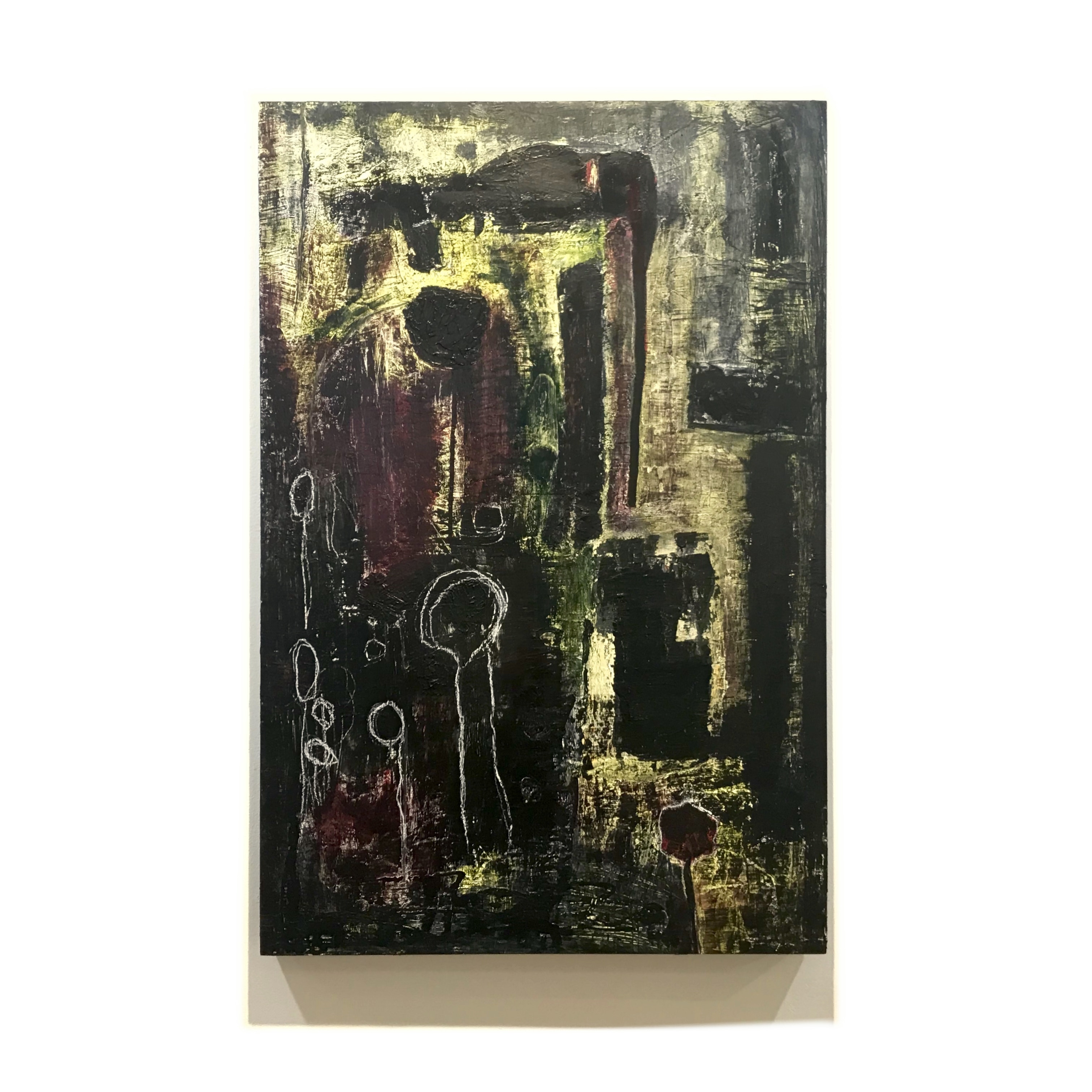 Acrylic, graphite, crayon on cradled panel