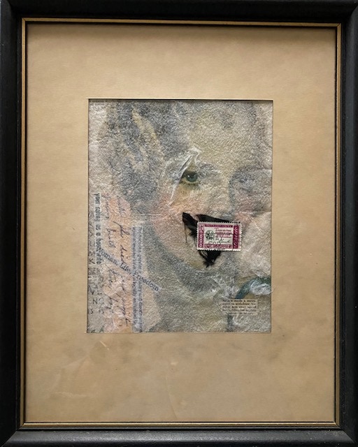 vintage paper, newsprint, fibers on Bristol board, reclaimed frame