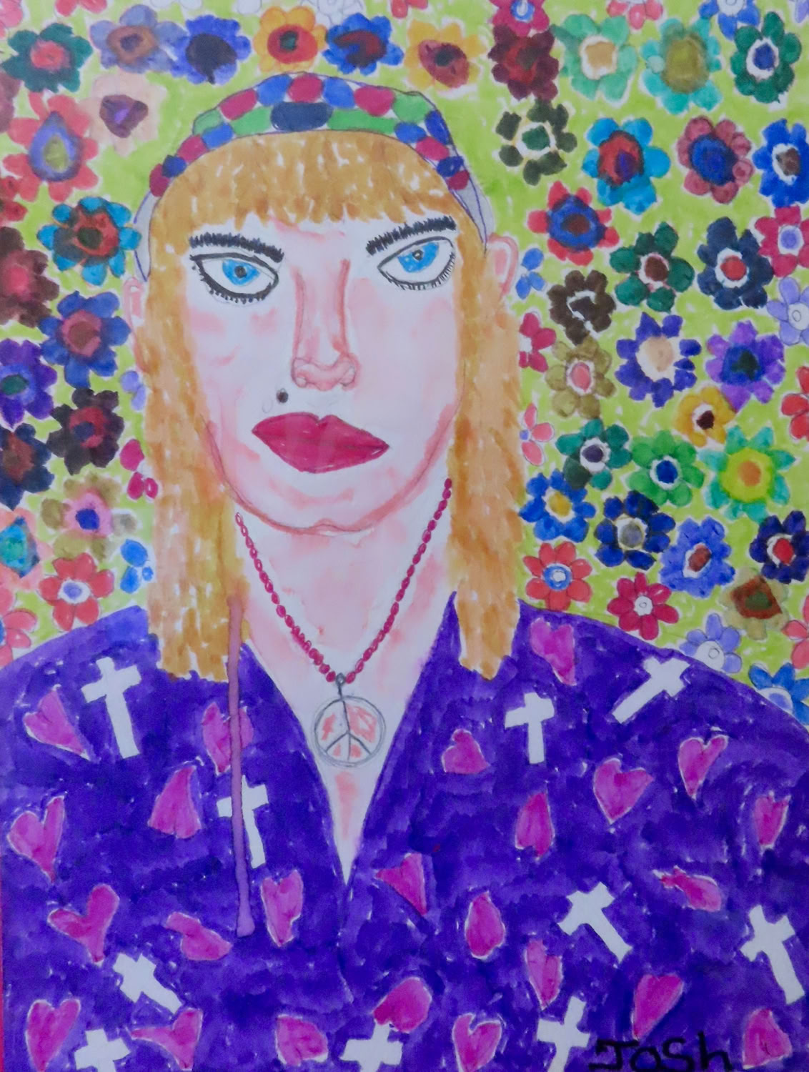 Joshua Aaron Gray, based in Bellows Falls Vermont works in watercolors creating portraits of animals, and most recently people. Gray was born with Down Syndrome in 1972. He loves life, hugs, adventures, nature, animals, his family and friends, cooking and eating, hiking and biking. Gray is passionate about his art, using his whimsical humor and kindness to portray animals instilled with personality and surrounded by colorful and often densely composed designs and patterns. Subjects include domestic, wild, and fantastic animals from around the world. Gray is a prolific artist and wishes to share his art to make people joyful and happy. The artist's solo show at Canal Street Art Gallery includes Gray’s first portraits of people, including his favorite celebrity: Madonna.