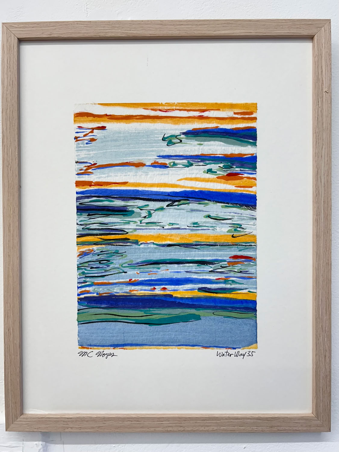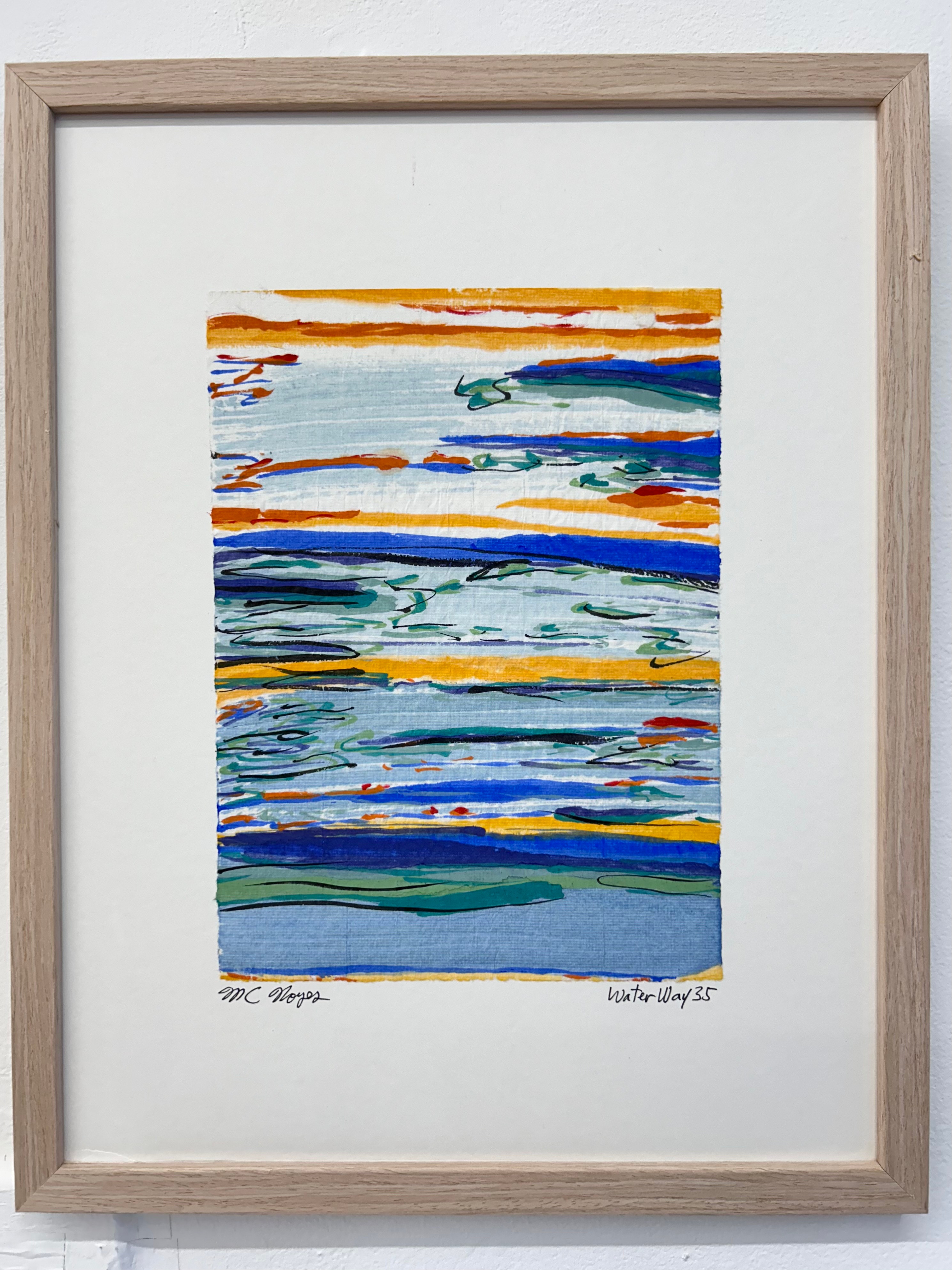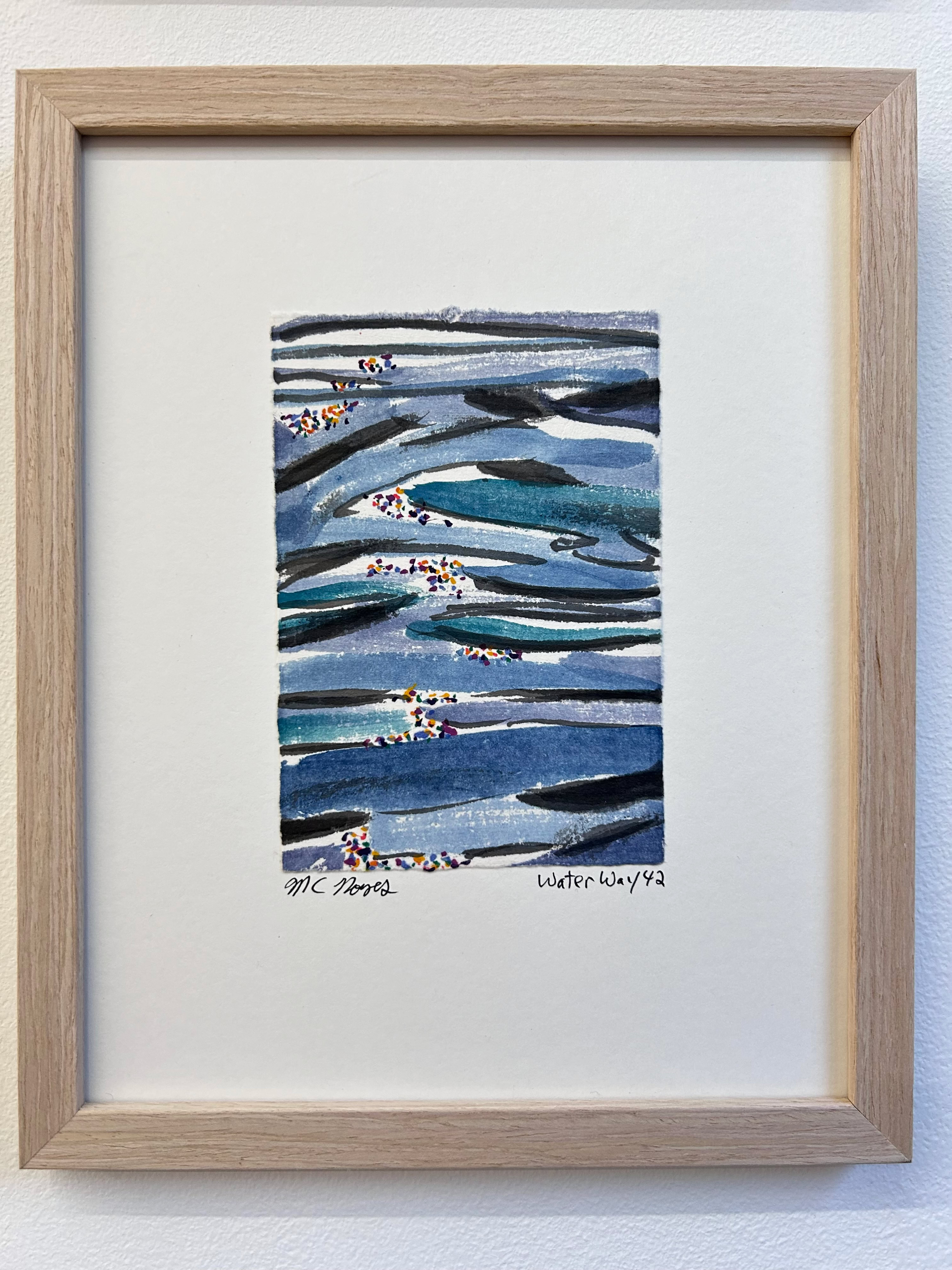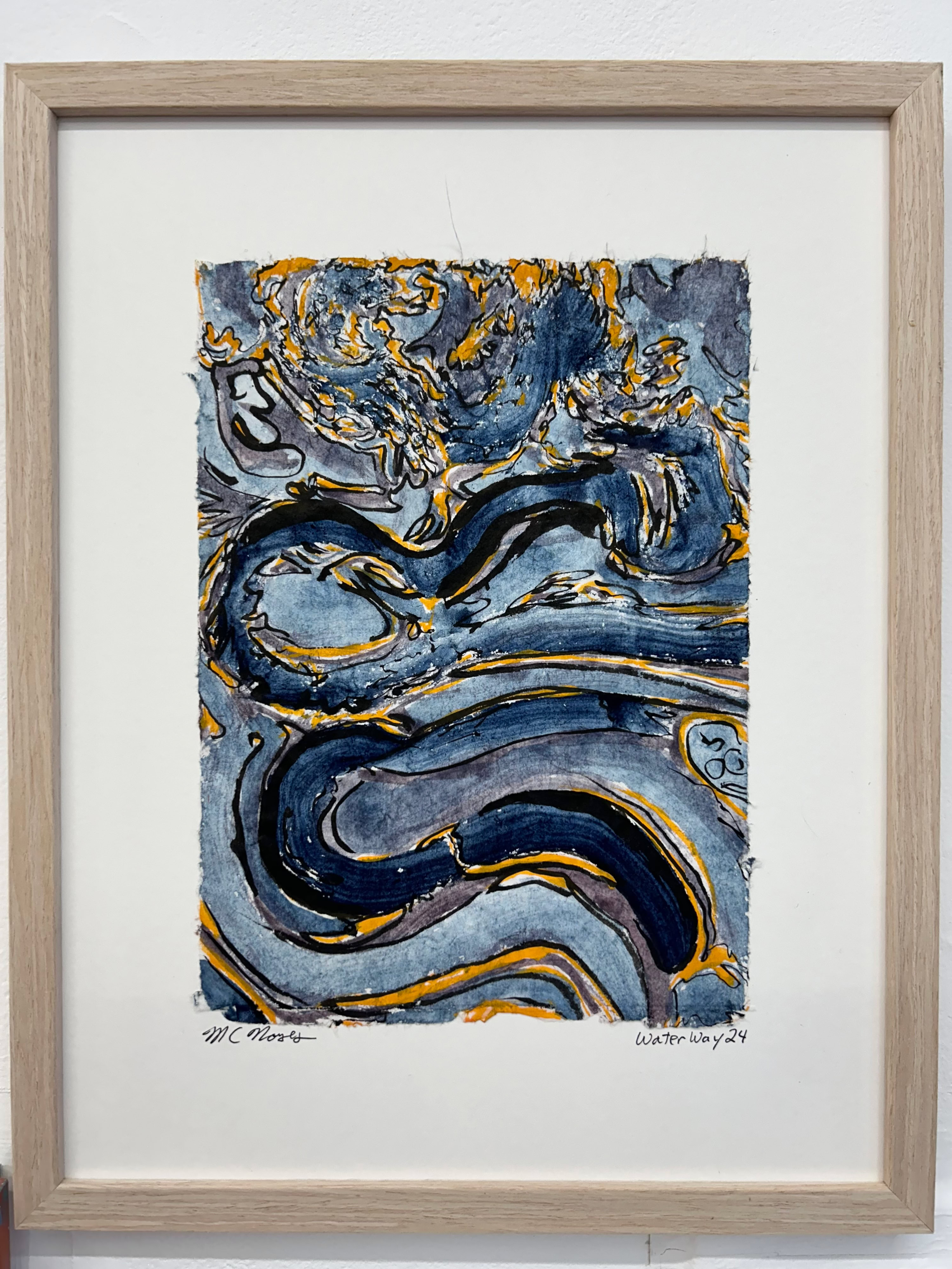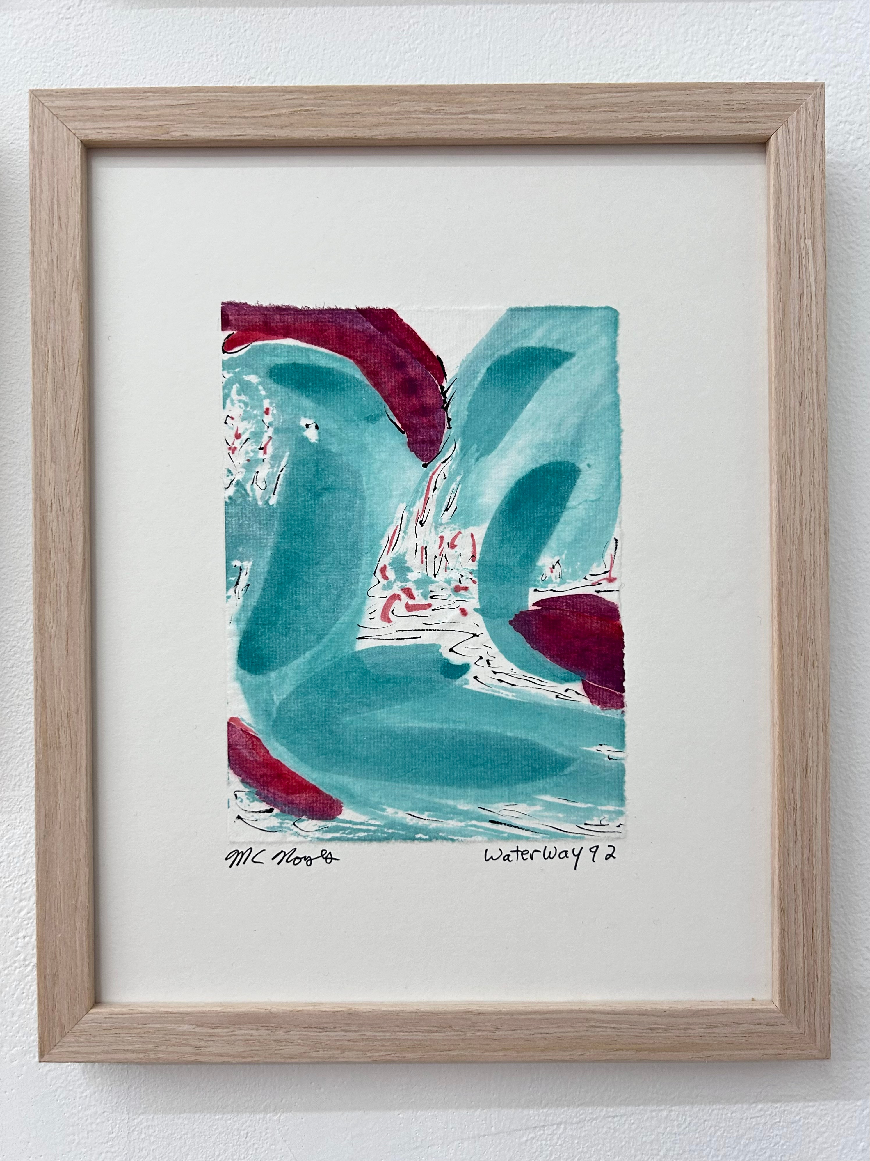 “I am drawn to the immediacy, permanence, and challenge which ink wash painting presents. The traditional techniques are hard to master and involve learning to grind inks to a proper consistency, choosing the paper, brushes, inks and colors to use and then applying one color at a time. The preparation which goes into one brushstroke is most of the process. This is why calligraphy is practiced to gain the skills needed to paint. It is attempting to control the uncontrollable. Practicing the materials and techniques of Chinese ink painting and calligraphy is what I am in pursuit of by creating my Water Way series.” -MC Noyes