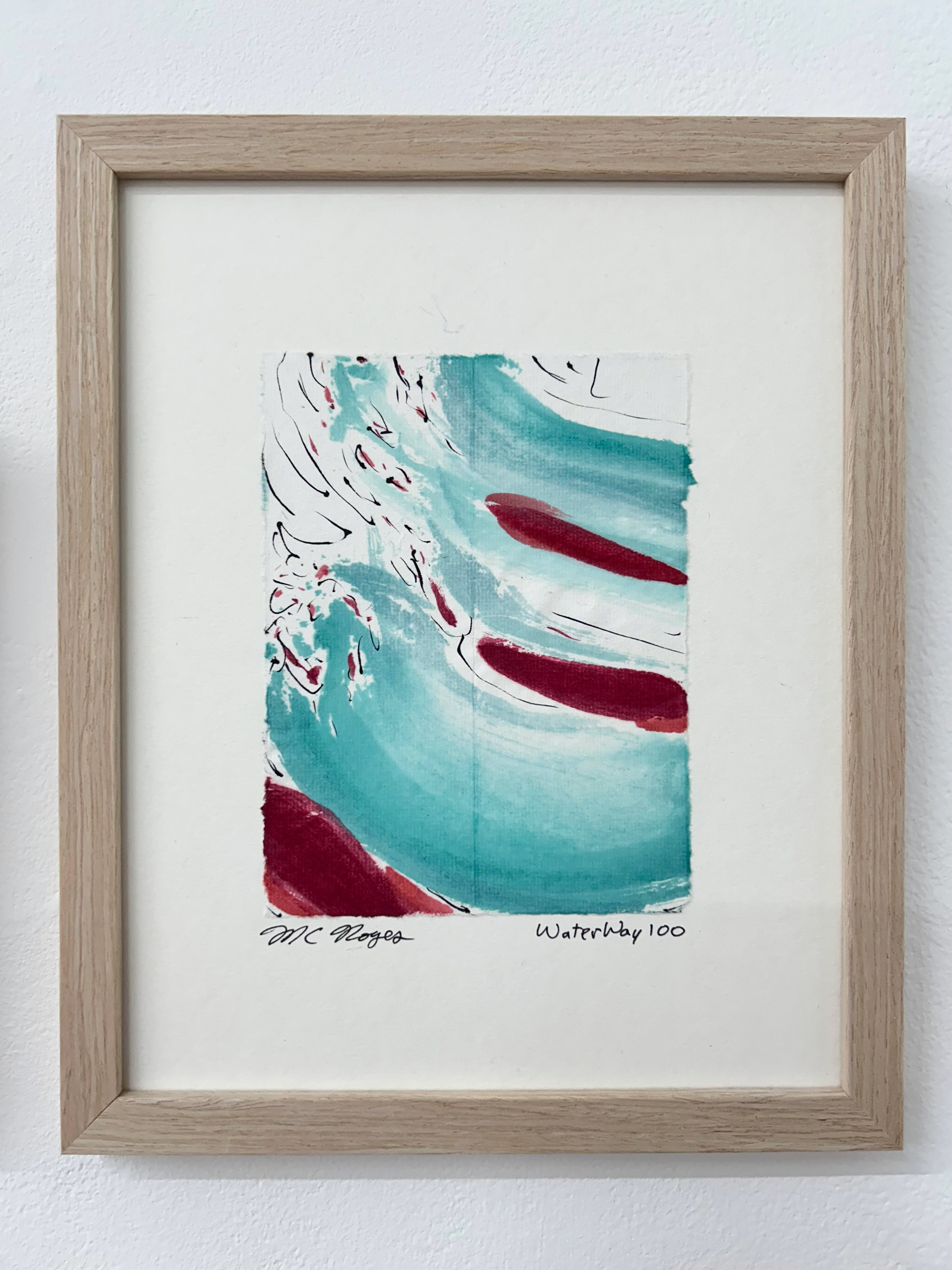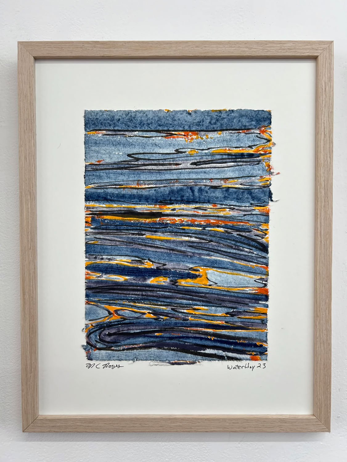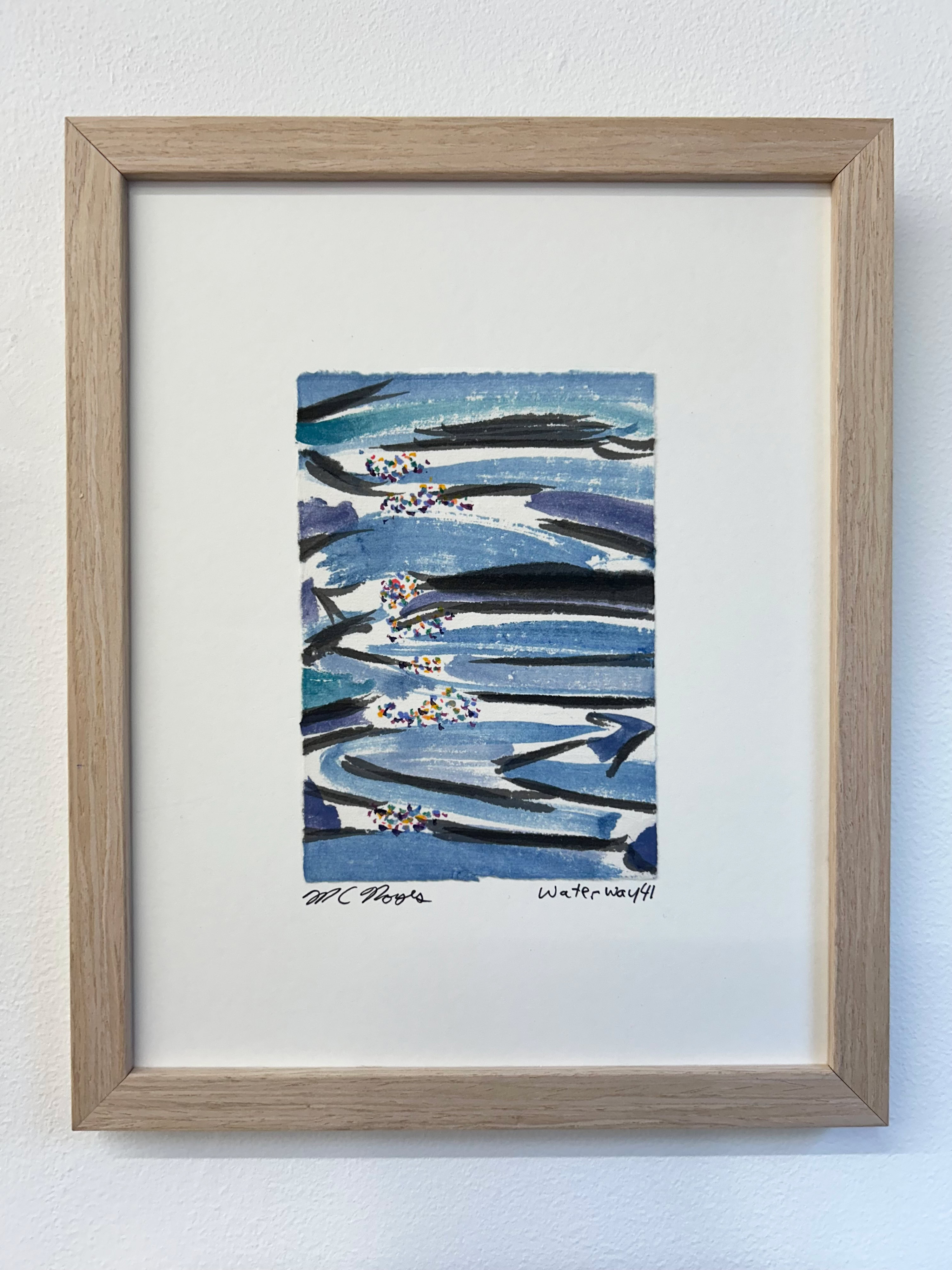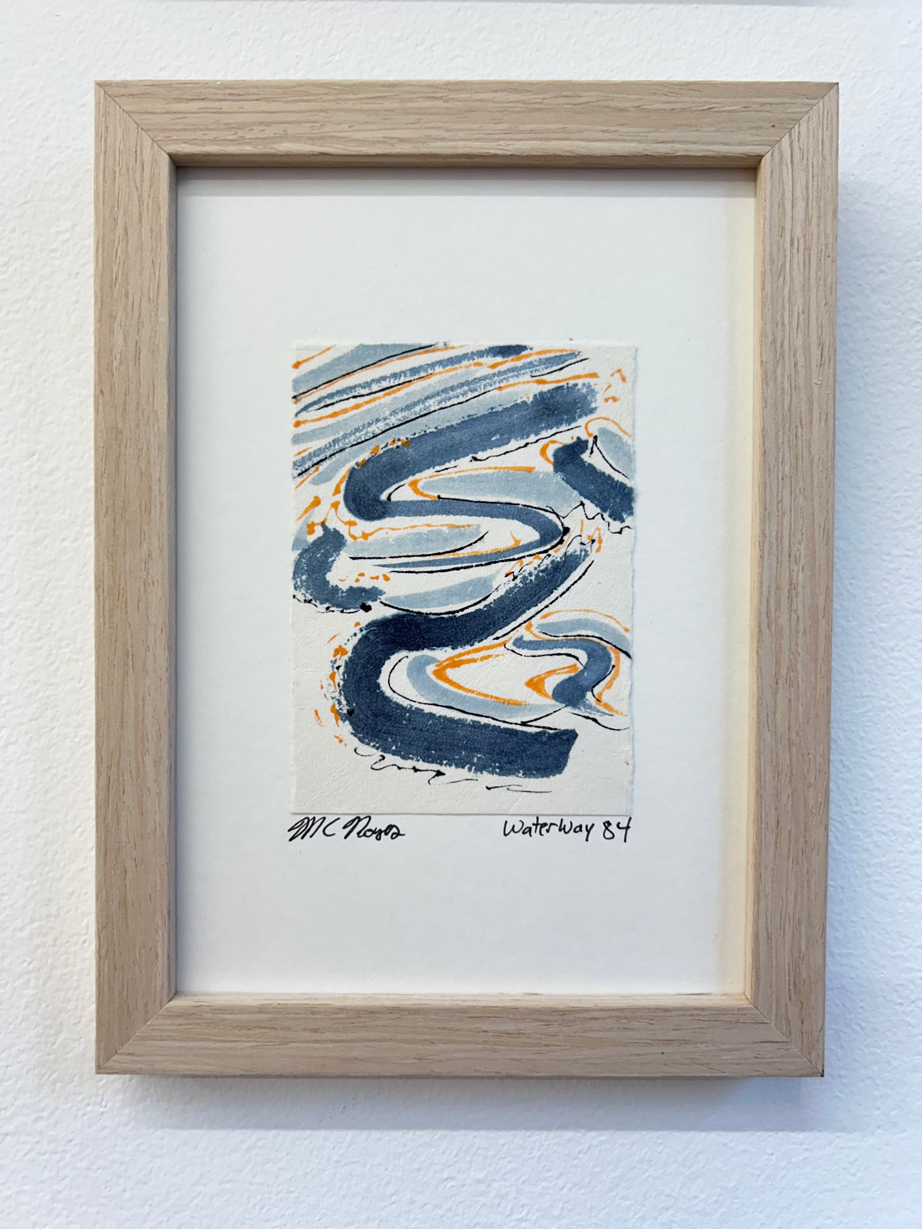 “I am drawn to the immediacy, permanence, and challenge which ink wash painting presents. The traditional techniques are hard to master and involve learning to grind inks to a proper consistency, choosing the paper, brushes, inks and colors to use and then applying one color at a time. The preparation which goes into one brushstroke is most of the process. This is why calligraphy is practiced to gain the skills needed to paint. It is attempting to control the uncontrollable. Practicing the materials and techniques of Chinese ink painting and calligraphy is what I am in pursuit of by creating my Water Way series.” -MC Noyes