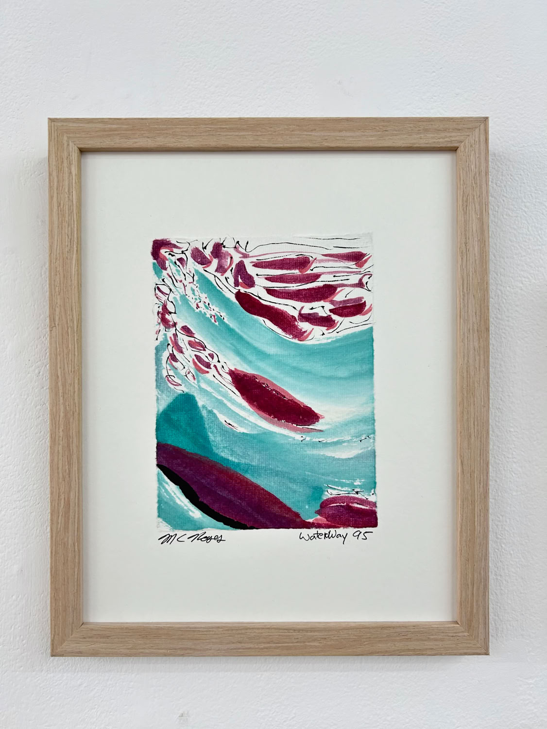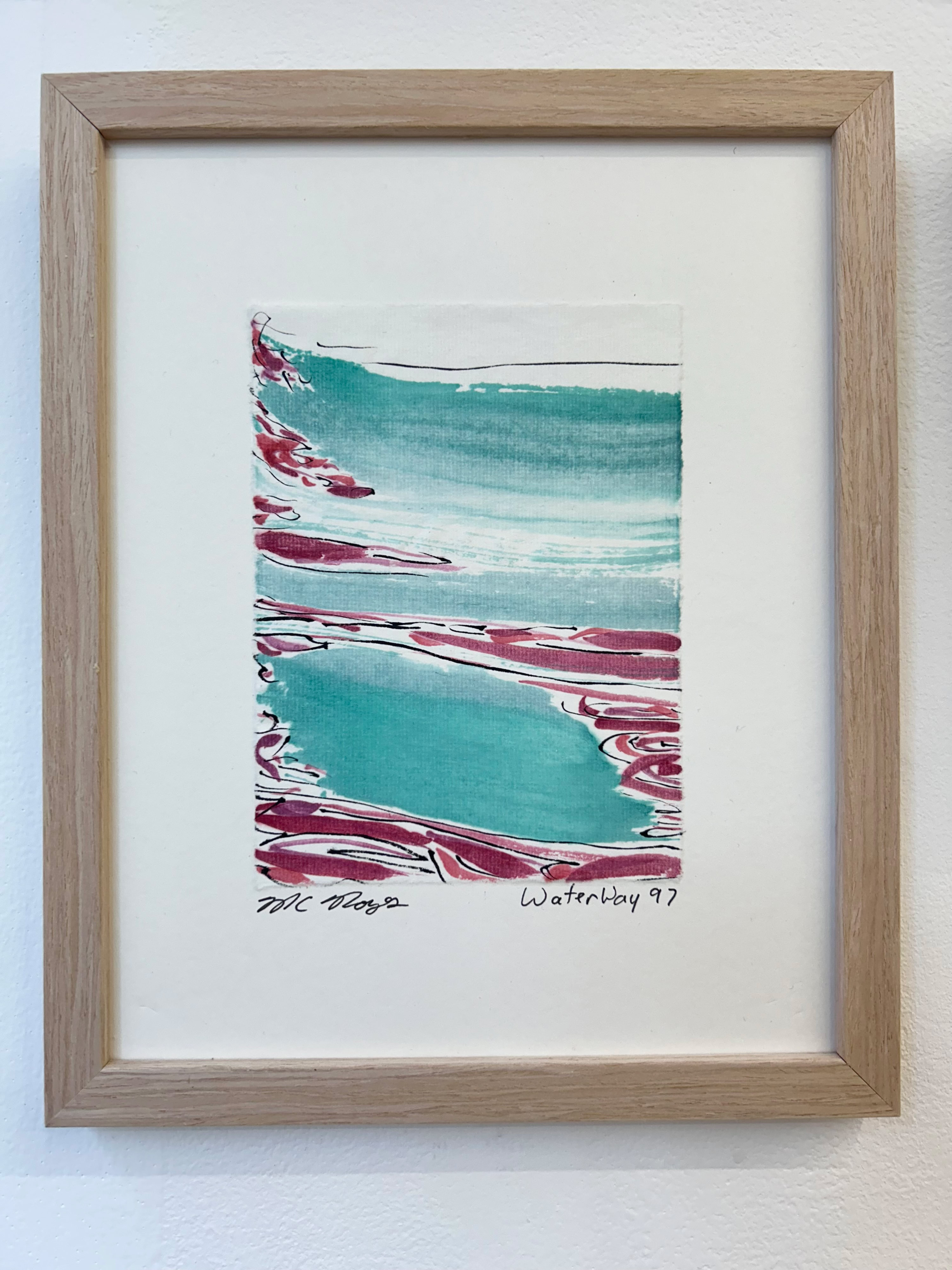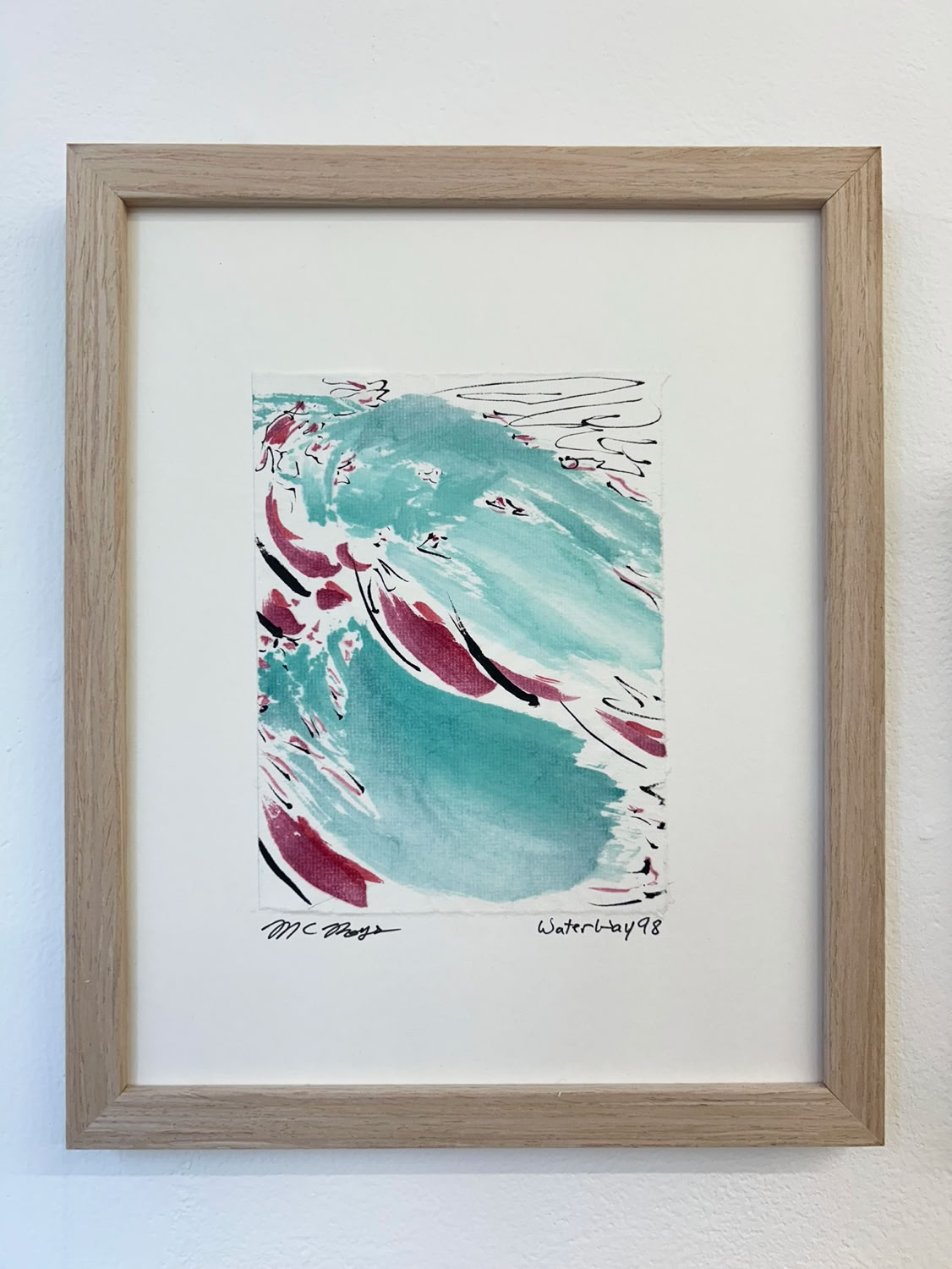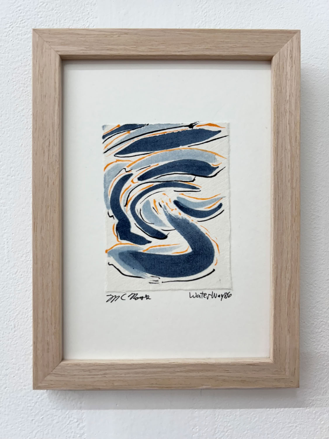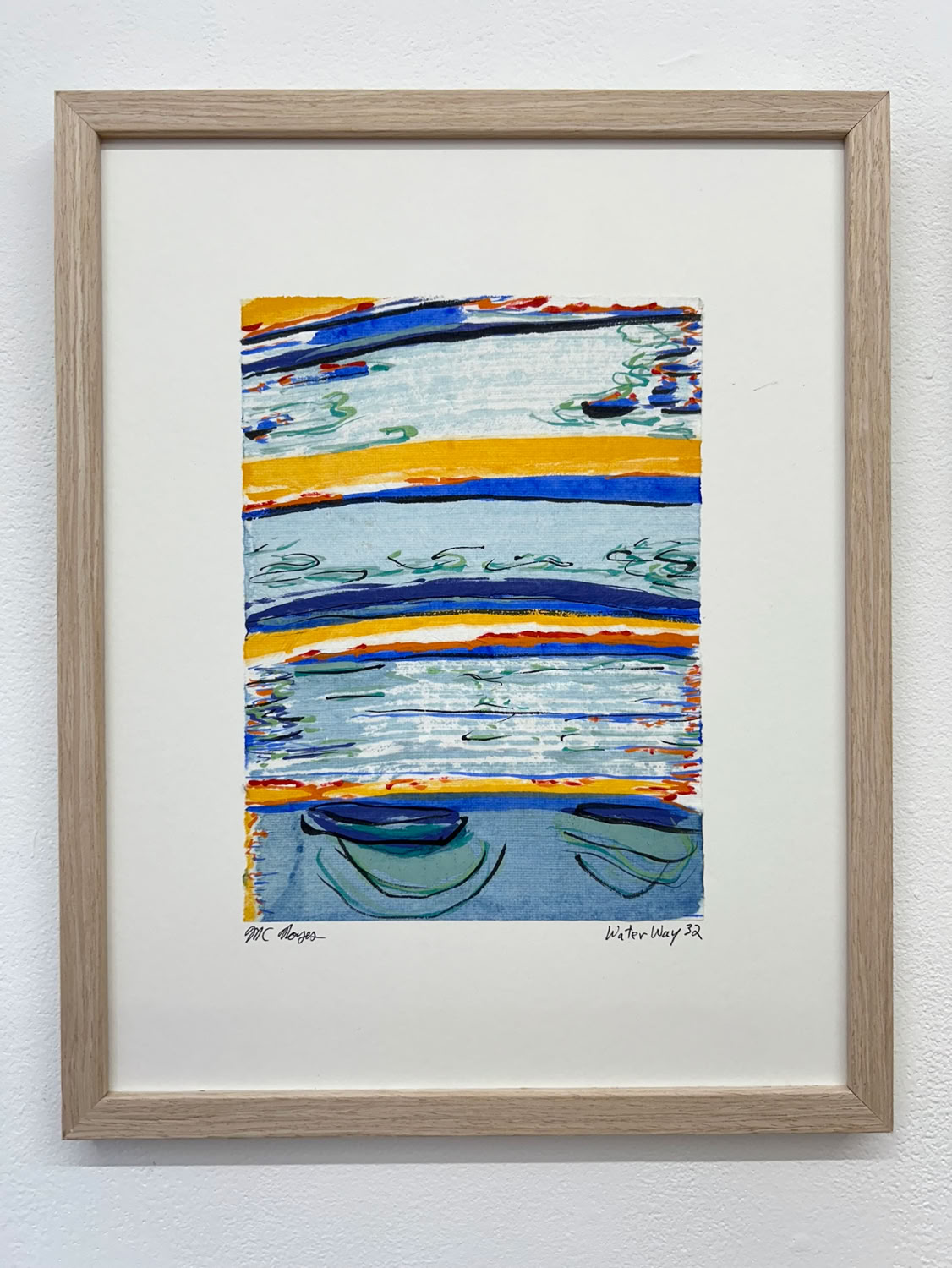 “I am drawn to the immediacy, permanence, and challenge which ink wash painting presents. The traditional techniques are hard to master and involve learning to grind inks to a proper consistency, choosing the paper, brushes, inks and colors to use and then applying one color at a time. The preparation which goes into one brushstroke is most of the process. This is why calligraphy is practiced to gain the skills needed to paint. It is attempting to control the uncontrollable. Practicing the materials and techniques of Chinese ink painting and calligraphy is what I am in pursuit of by creating my Water Way series.” -MC Noyes