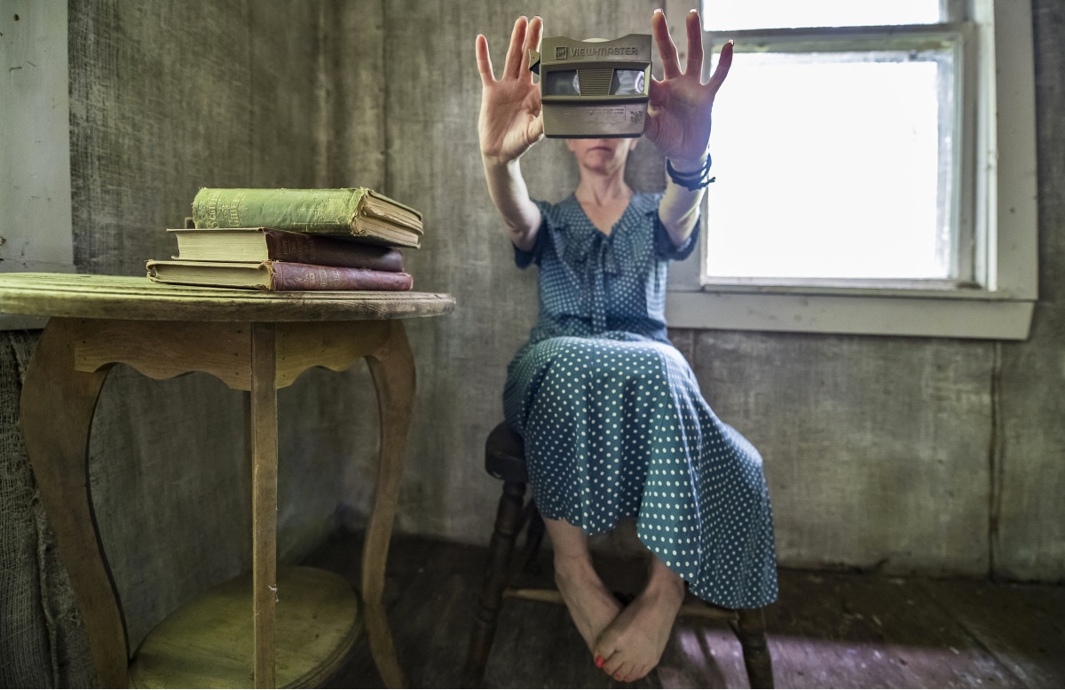 Canal Street Art Gallery is honored to exhibit self portraits of Ea Maples. Maples is a photographer who sees a composition with herself in it as another piece of the surroundings. She finds inspiration in everyday and historical objects, while exploring the decaying architectural interiors of New England. “Sometimes my art remains a place of self doubt and I fear it may abandon me. Or alternatively, it manifests itself in a clear vision that comes out with a tenacity that cannot be restrained. I am in awe of the creative process in the truest sense of the word; I am both terrified and curious of the magic behind creative expression and the hold it has over me.” - E.M. Maples, a current practicing psychotherapist, finds that the rolls she has played in her life influence her art. The artist’s process involves placing herself both in front of and behind the camera. This unfolds a narrative of struggle, self doubt, humor, and vision.