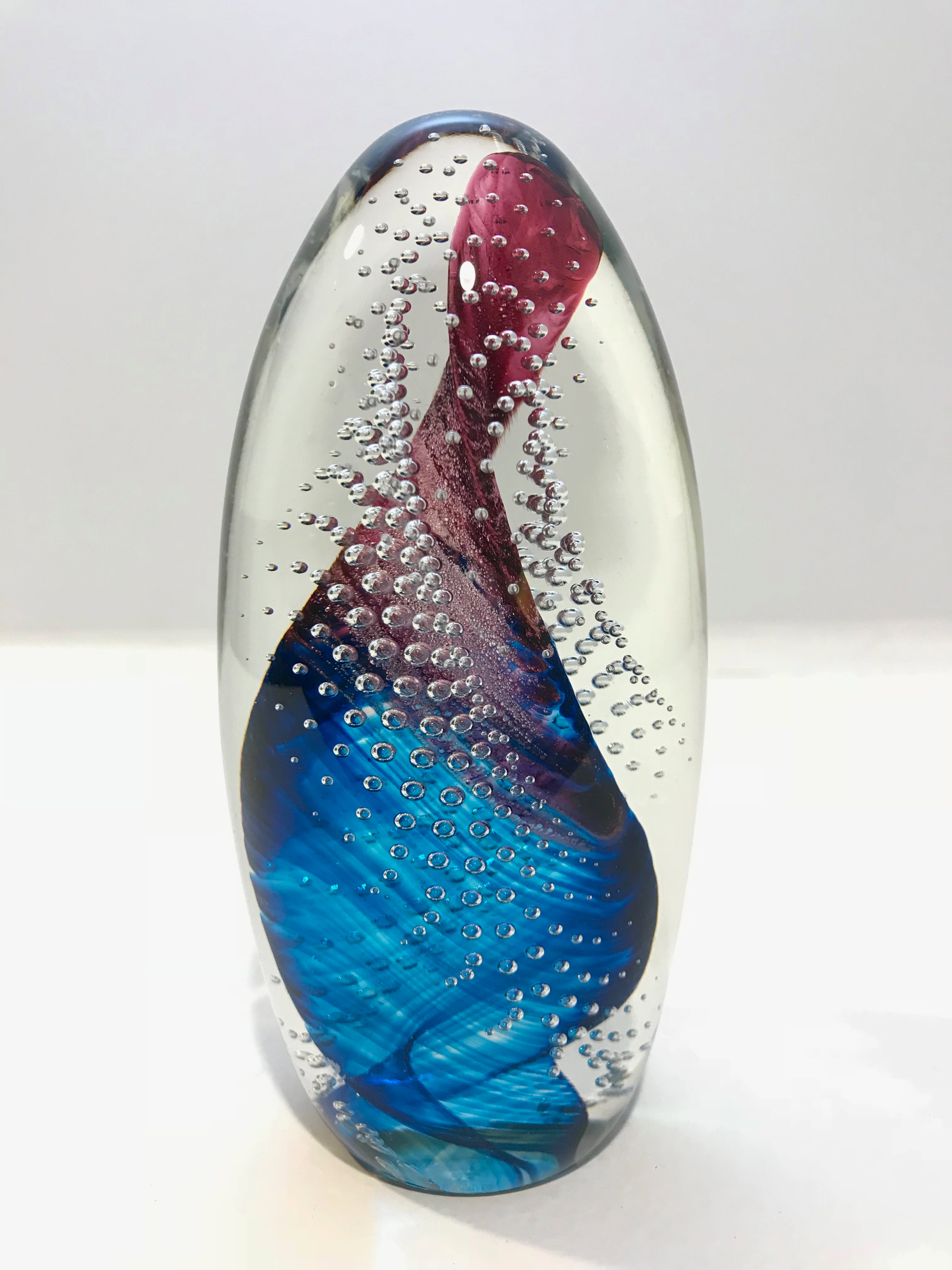 Cobalt & Rose Bubble Twist Egg Paperweight