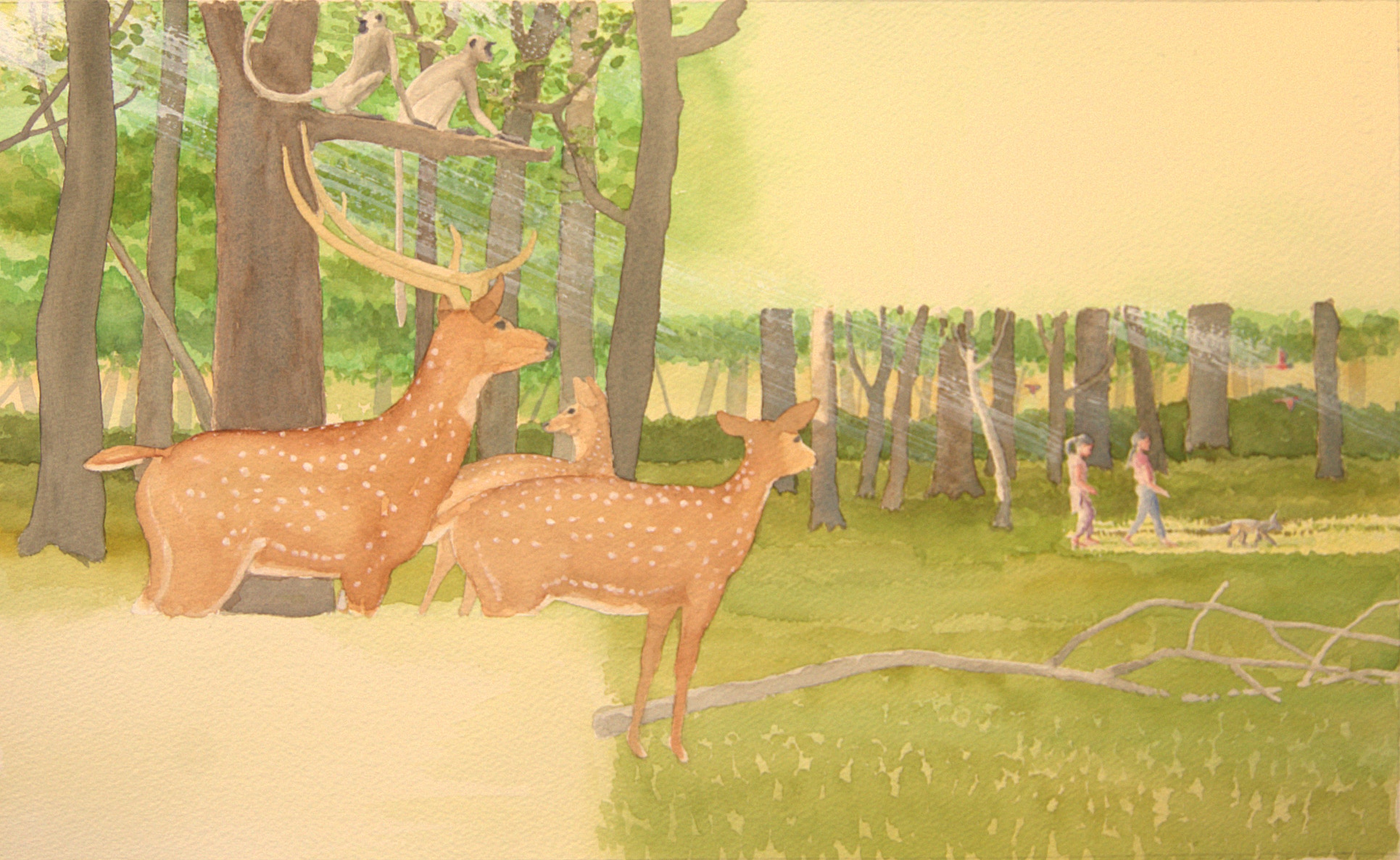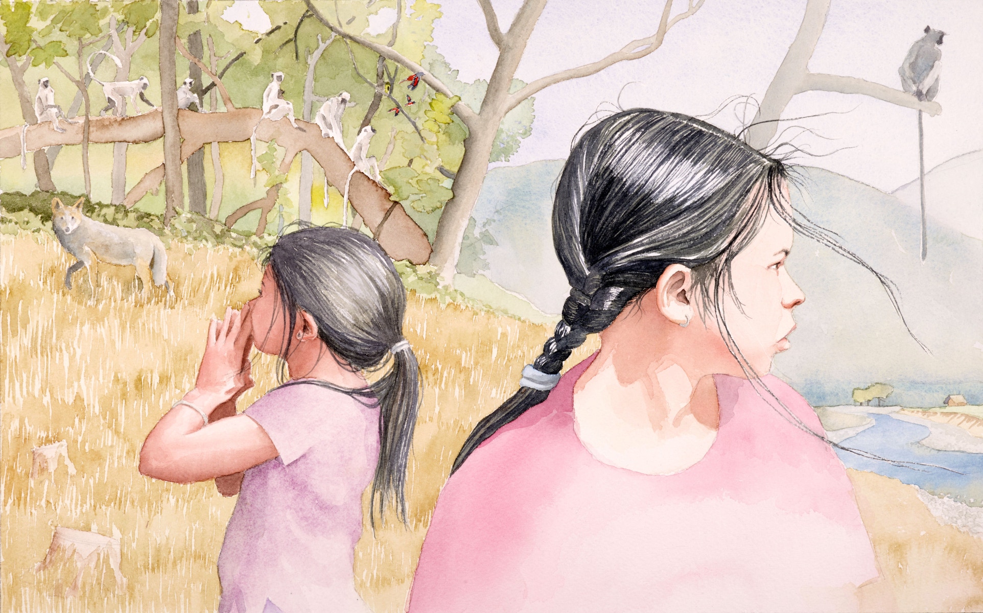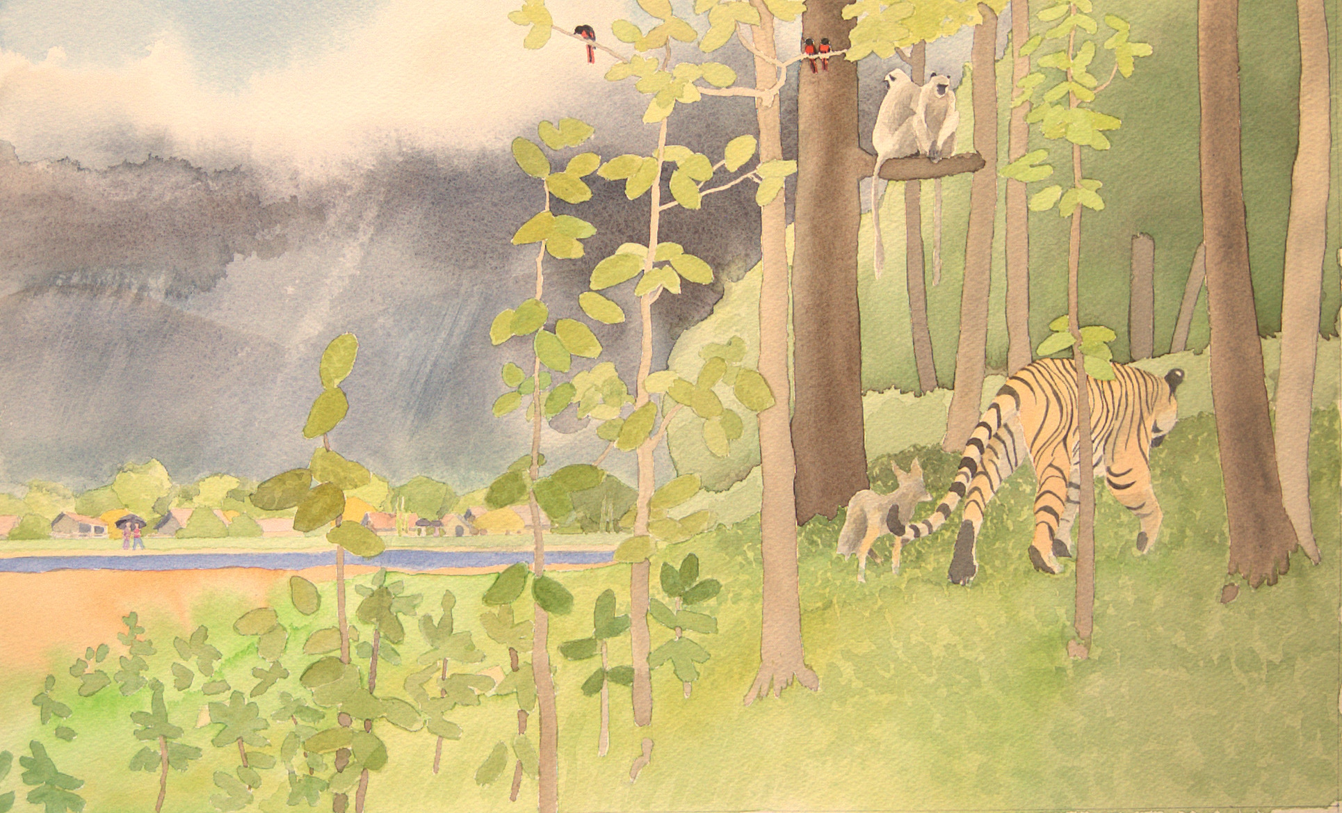 LISTEN TO THE WIND Charles Norris-Brown exhibits the artist’s and social anthropologist’s original paintings and drawings from two of his illustrated books, Did Tiger Take the Rain?, and Thunder Basin. Norris-Brown’s first book, Did Tiger Take the Rain?, first edition published by Green Writers Press 2016, is now offered on Creative Commons license by Pratham Books, India’s largest non-profit children’s book publishing house. To best protect the tiger and the people, during several journeys to India doing fieldwork, Norris-Brown created an illustrated children’s book to explain how their shared plight was caused by human-wrought ecological changes in the land. All the original watercolor illustrations from this publication are on exhibit.