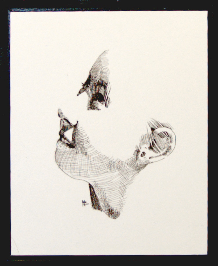 Ink sketch on bristol board (second draft; marked, not full page; linked to “Ravens”)