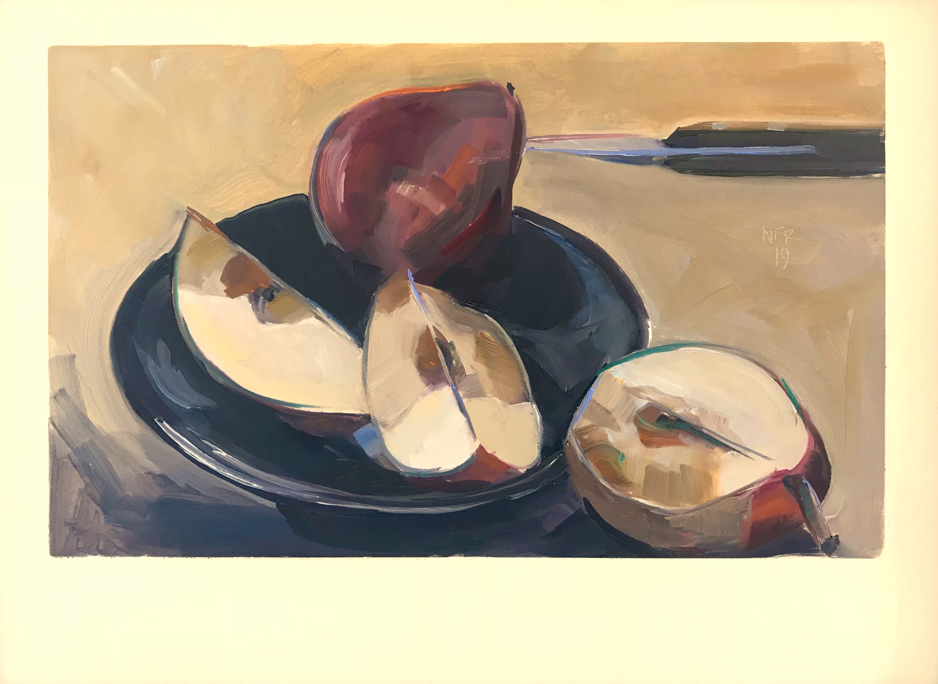 “I think of my small paintings as 'companions' rather than an artistic 'statement'. I hope they may exist with generations of a family living around them. I imagine my tulips or peaches being quiet observers of different lives performed in their space. I consider it theater in two directions - observer to painting and painting to observer.” - Nancy Fitz-Rapalje.