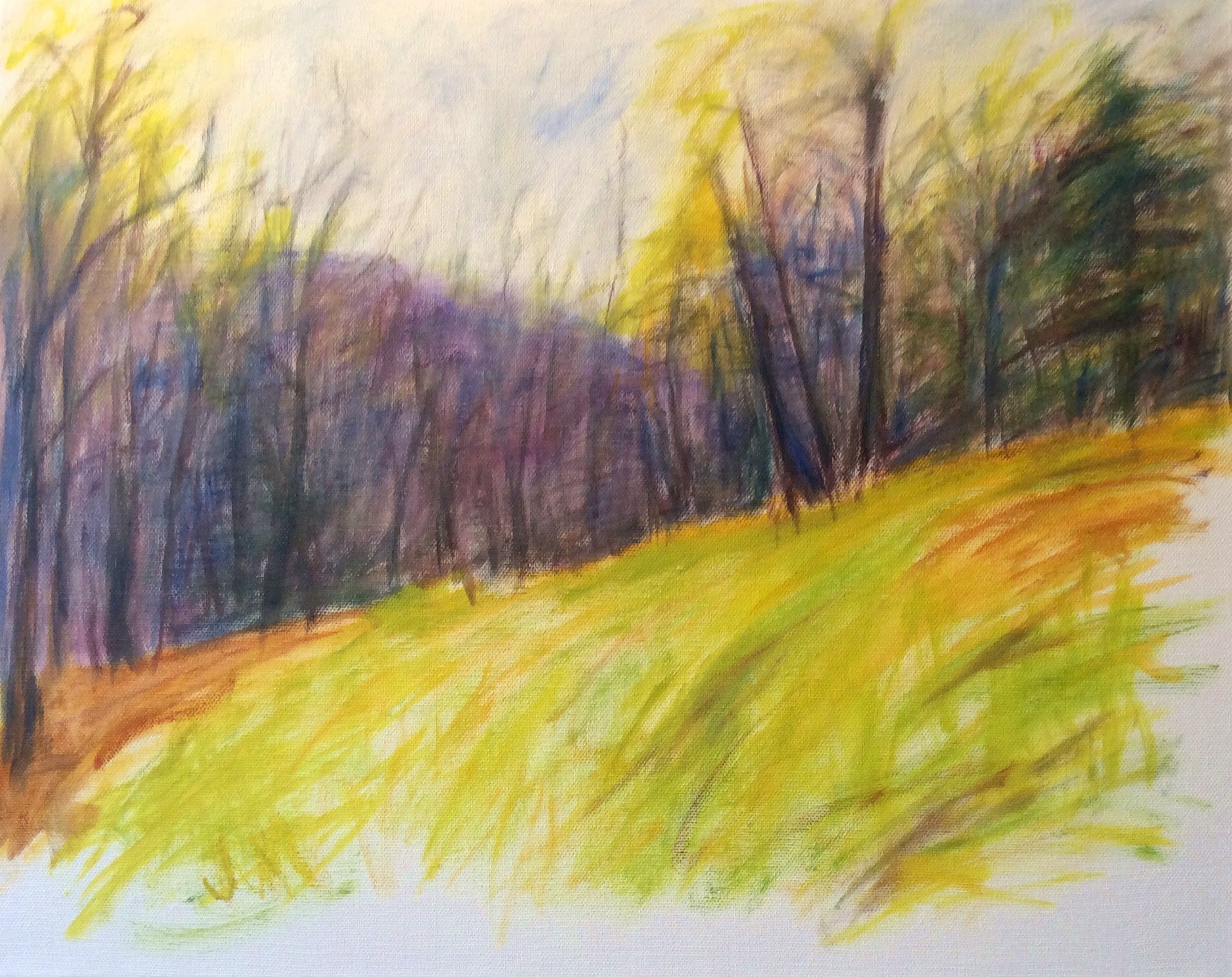 Jeanne McMahan, based in South Strafford, Vermont, currently works in oils. Using the landscapes of her native Maine and Vermont as subjects, the artist presents her particular vision of gestures, colors, patterns and textures. McMahan, with a background in art therapy and master studies in fine arts and painting, worked in mixed media during her early career in New York City. After relocating to Vermont, McMahan continues to focus on painting the landscape in oils.