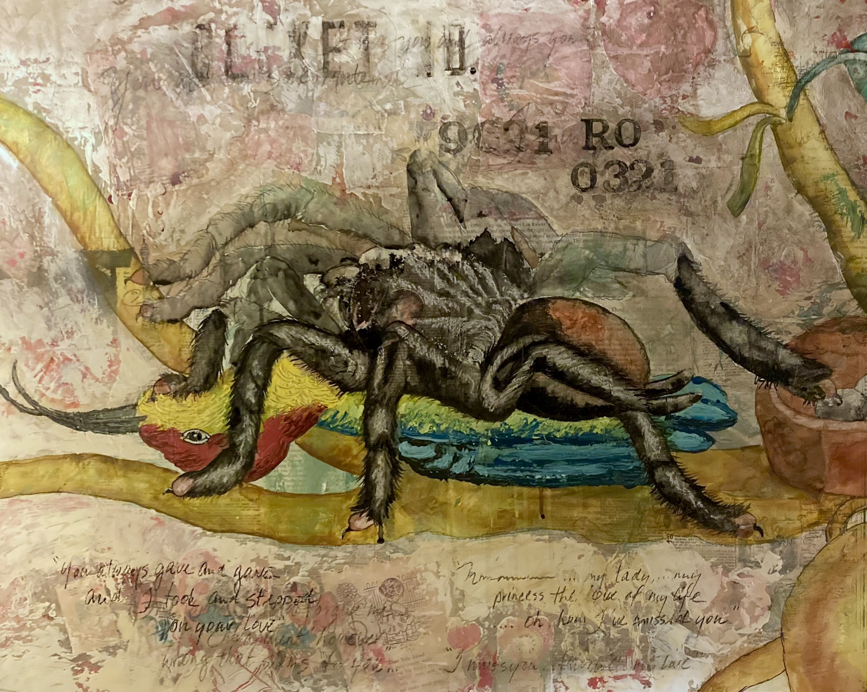 collage, acrylic, watercolor, ink on board