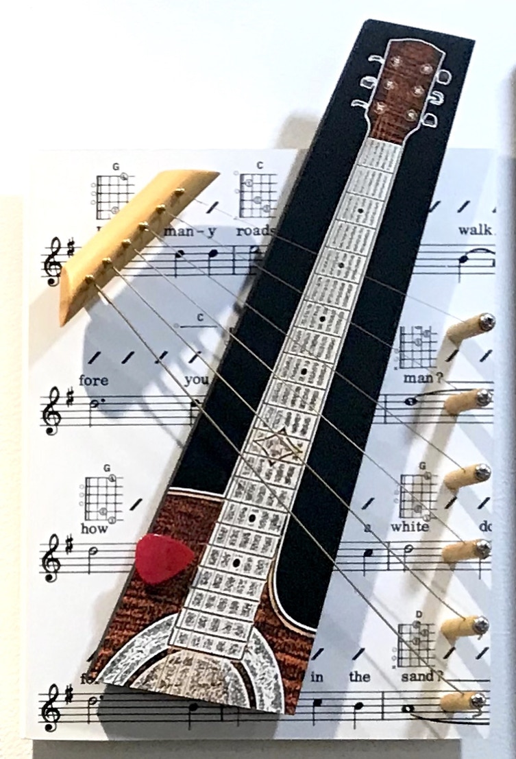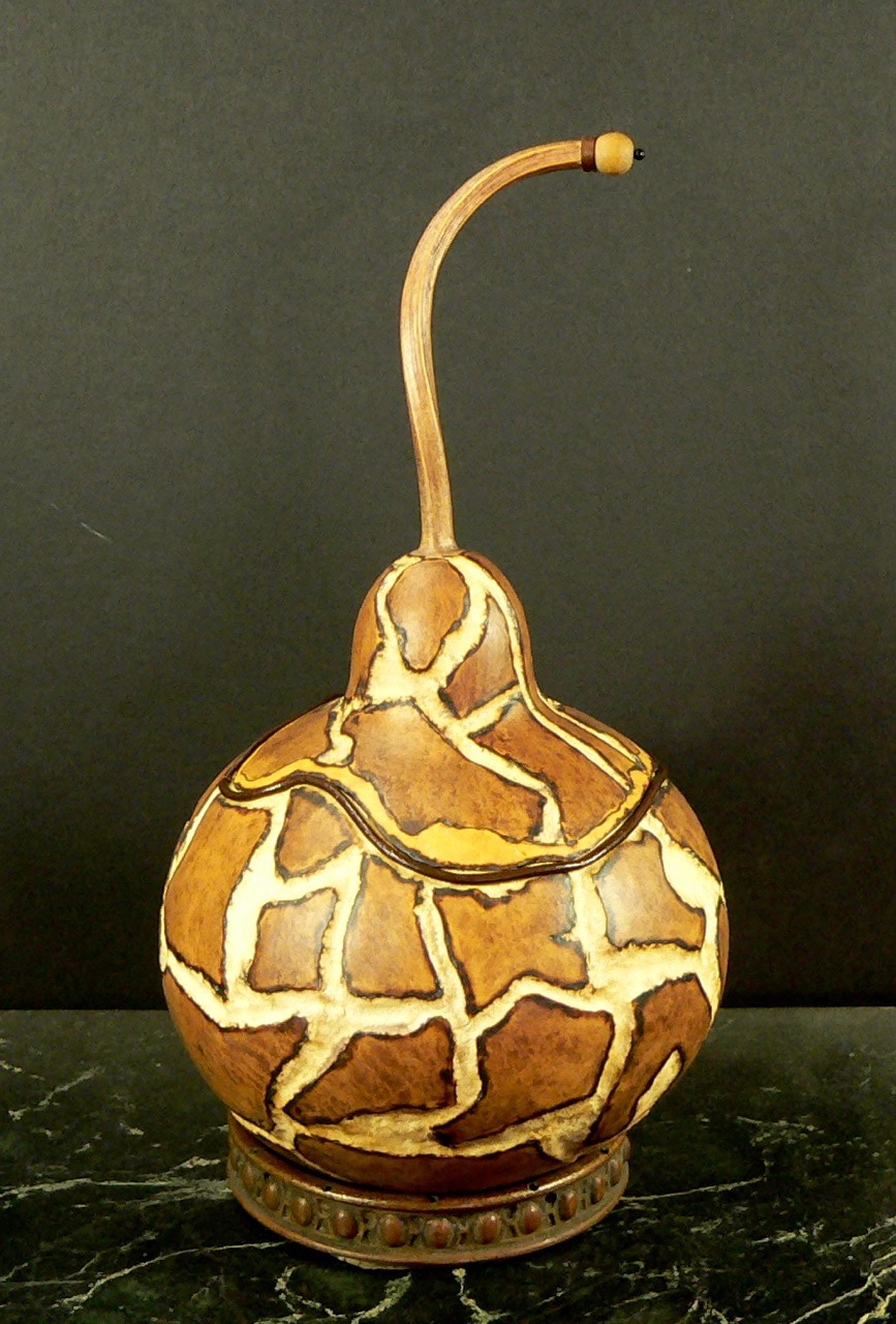 Handmade paper, dye, tile and metal base on mini bottle gourd
