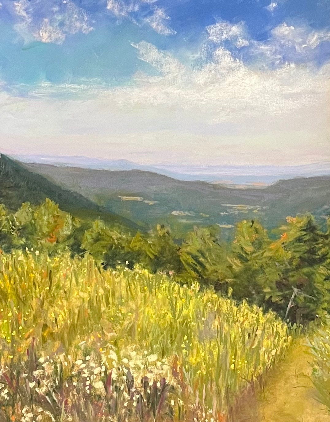 Kim Grall uses materials grown, collected, and produced entirely by the artist to create this year’s collection of miniature one-of-a-kind ornamental gourds, such as Zebras, Fish, Stars, and Acorns, and offering this year’s show starting price point of $25. Yevette Hendler’s Demise of the Urban Snowman, archival pigment print, Jean Cannon’s Winter Sky, watercolor, and Clare Adams’s Bees, reverse painted glass, may be had for under $100. Susan Mcnulty’s Icing Over, Marianne Shaughnessy’s Shadows, and Karen Fortier’s Snow Covered Mountains, all original watercolor paintings, along with Judi Forman’s colored pencil on copper with sterling silver Pendant, and niobium with sterling silver Drop Earrings, are all offered for under $200. Oil paintings such as Kitchen Sink 1 by Nancy Fitz-Rapalje, Towards the Ridgeline, by Marcie Maynard, and pastel paintings such as Over The Hills, by Deedee Jones, and At His Post, by Lesley Heathcote are all priced from $200-$400. Purchases of original artworks from Canal Street Art Gallery directly support the artists and the local creative economy.