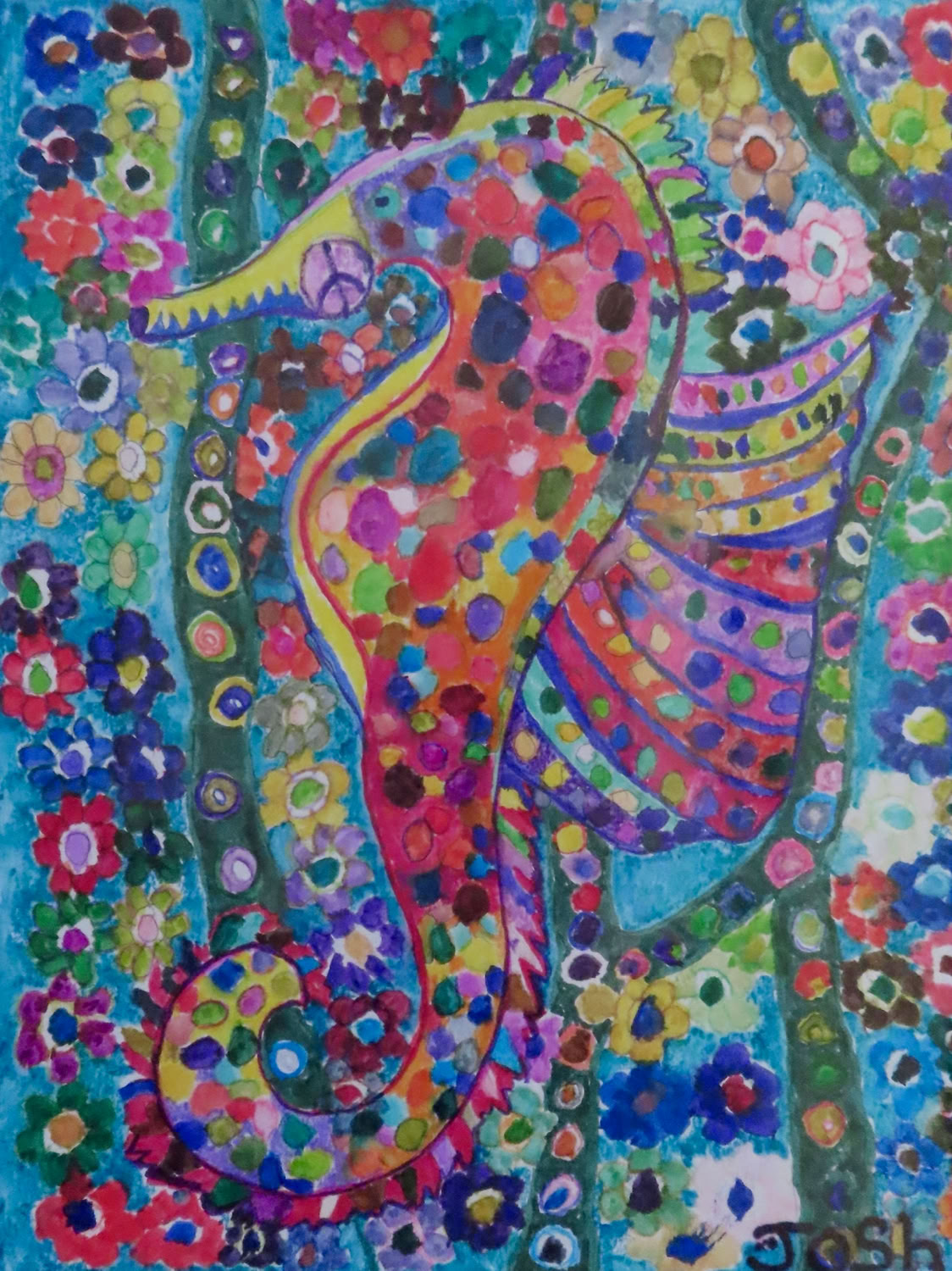 Joshua Aaron Gray, based in Bellows Falls Vermont works in watercolors creating portraits of animals, and most recently people. Gray was born with Down Syndrome in 1972. He loves life, hugs, adventures, nature, animals, his family and friends, cooking and eating, hiking and biking. Gray is passionate about his art, using his whimsical humor and kindness to portray animals instilled with personality and surrounded by colorful and often densely composed designs and patterns. Subjects include domestic, wild, and fantastic animals from around the world. Gray is a prolific artist and wishes to share his art to make people joyful and happy. The artist's solo show at Canal Street Art Gallery includes Gray’s first portraits of people, including his favorite celebrity: Madonna.