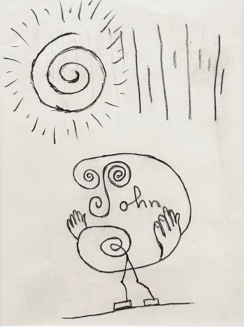 “My wife [Martha] was married to my cousin Peter Nichols, a person of hidden insanity and homosexuality, as well as alcohol and drug problems. One time in the late 1950’s, Peter, after an evening listening to jazz at the Birdland Jazz Club, took me from Grand Central Station, going underground from 42nd Street and exiting a manhole on 59th Street near Central Park. After that, and sometime in the early 1990’s I kept on meeting Marty; at Peter’s funeral, uncle Jim’s and aunt Elleanor’s funeral, and then at Gouverneur and aunt Muffy’s funerals. Marty and I started a relationship and it really got started when I sent her a bunch of lilies on Easter. She visited me at the Dexter House on 86th Street, a low cost transient hotel, and was smitten when she saw me in a tiny room sitting on my bed in the lotus position. We got married and took marriage vows with the Self-Realization Fellowship in Greenfield, Front Royal, Virginia. Marty studied at the Academy of Fine Arts in Philadelphia and her artwork concerns inner growth and the spiritual realms. She was connected to Paramahansa and the Self-Realization Fellowship.” -John van der Does