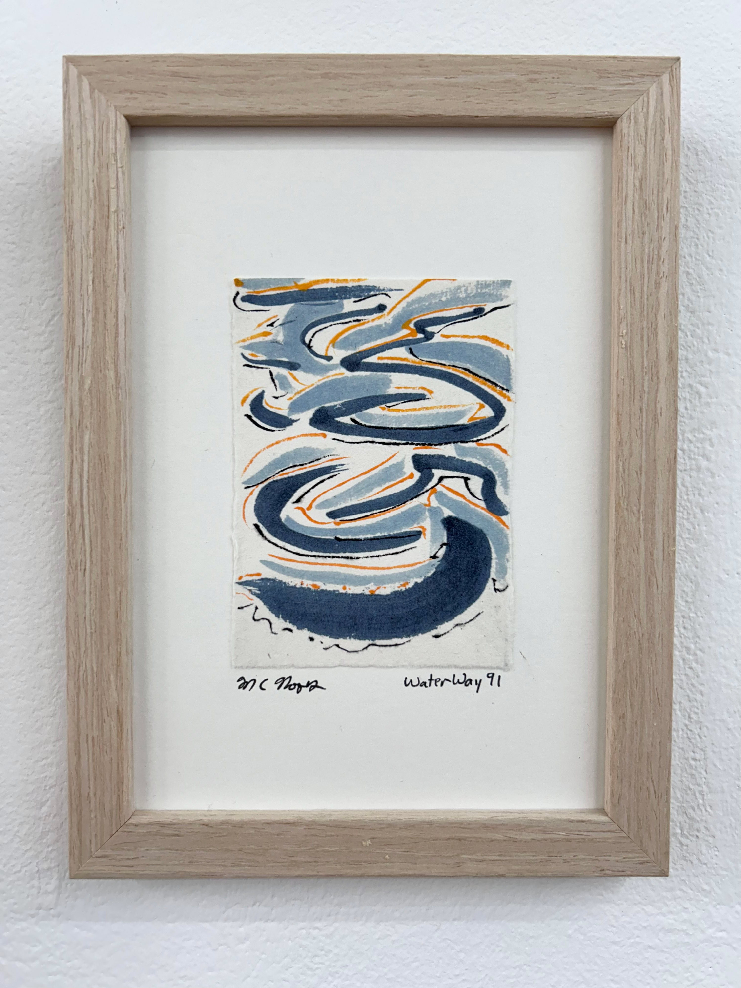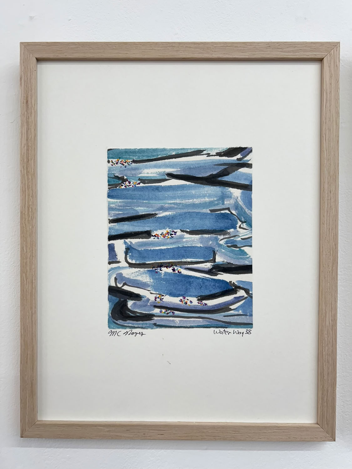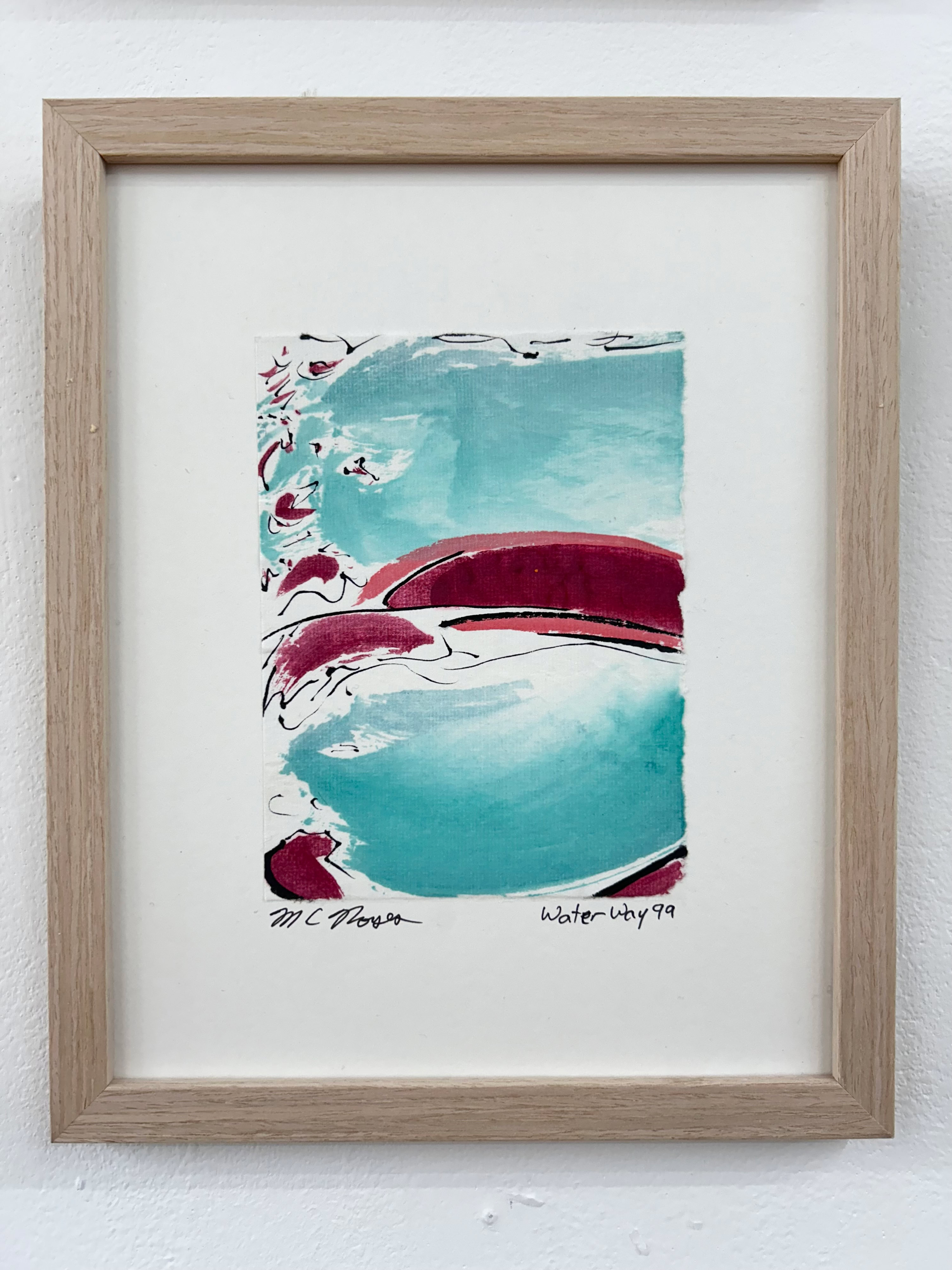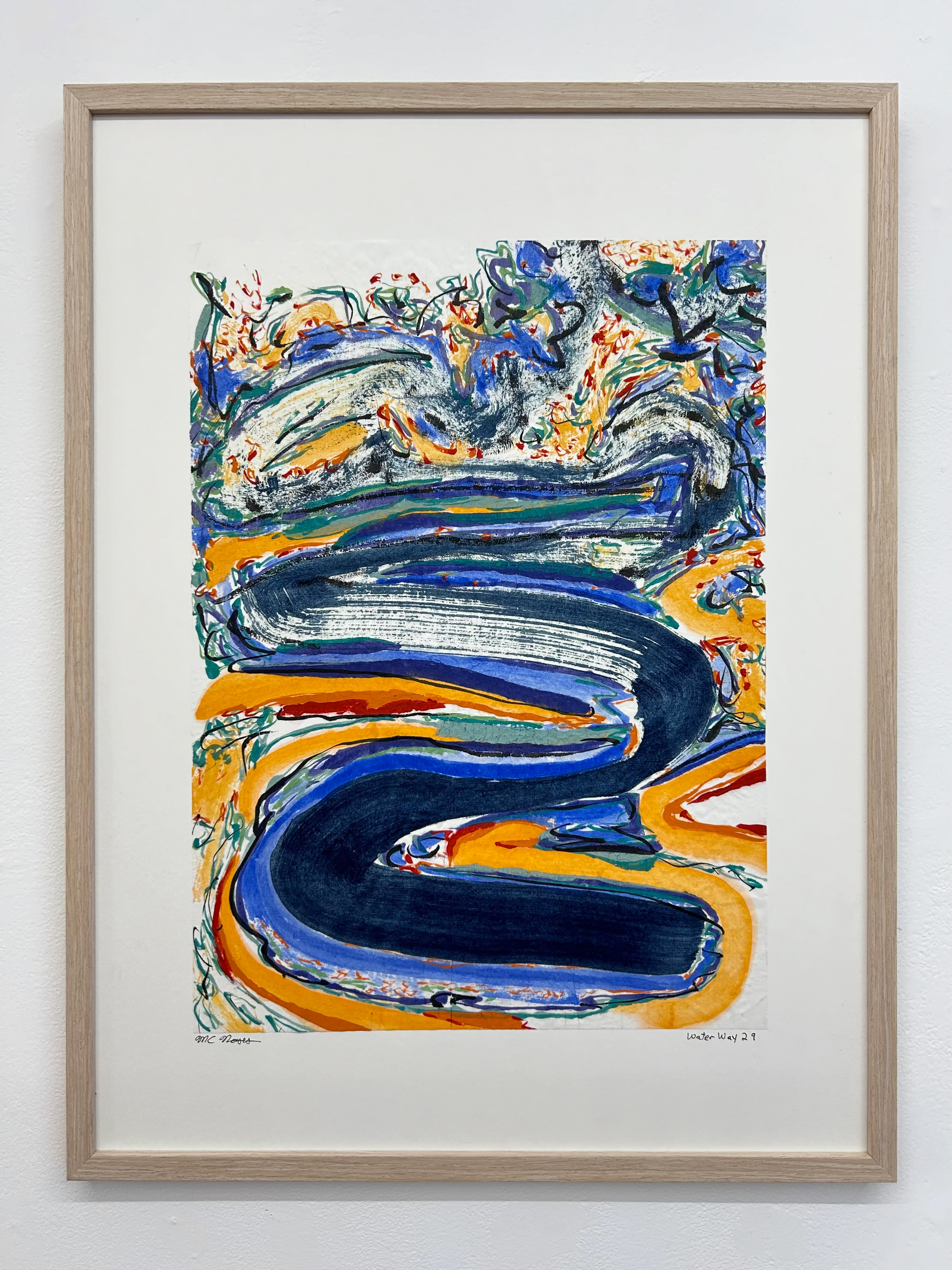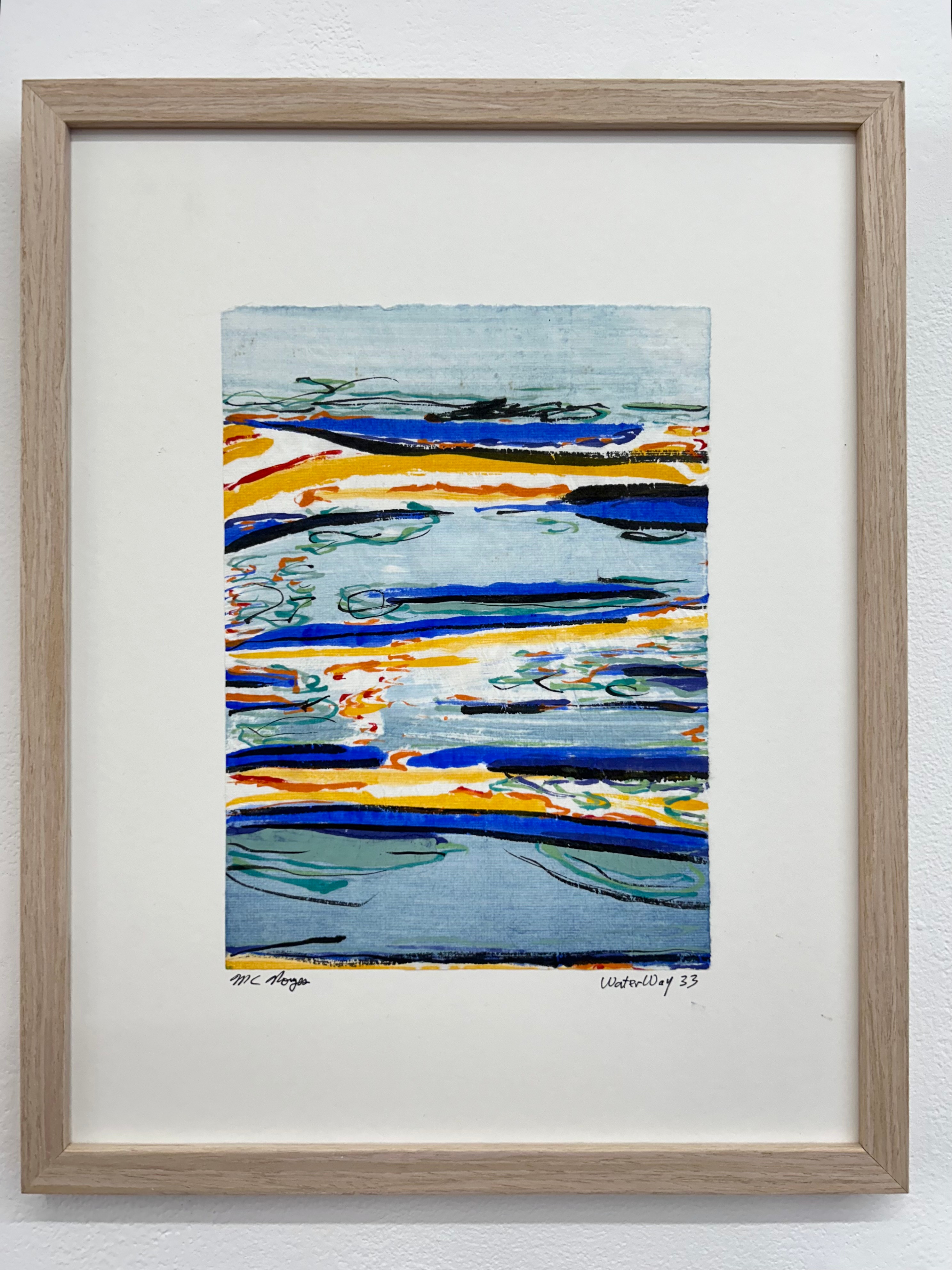“I am drawn to the immediacy, permanence, and challenge which ink wash painting presents. The traditional techniques are hard to master and involve learning to grind inks to a proper consistency, choosing the paper, brushes, inks and colors to use and then applying one color at a time. The preparation which goes into one brushstroke is most of the process. This is why calligraphy is practiced to gain the skills needed to paint. It is attempting to control the uncontrollable. Practicing the materials and techniques of Chinese ink painting and calligraphy is what I am in pursuit of by creating my Water Way series.” -MC Noyes
