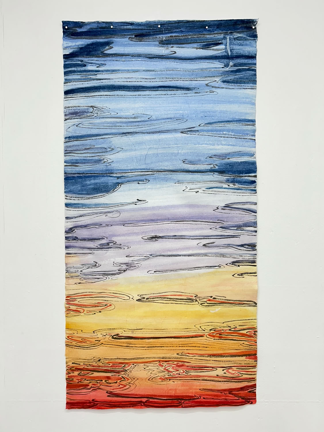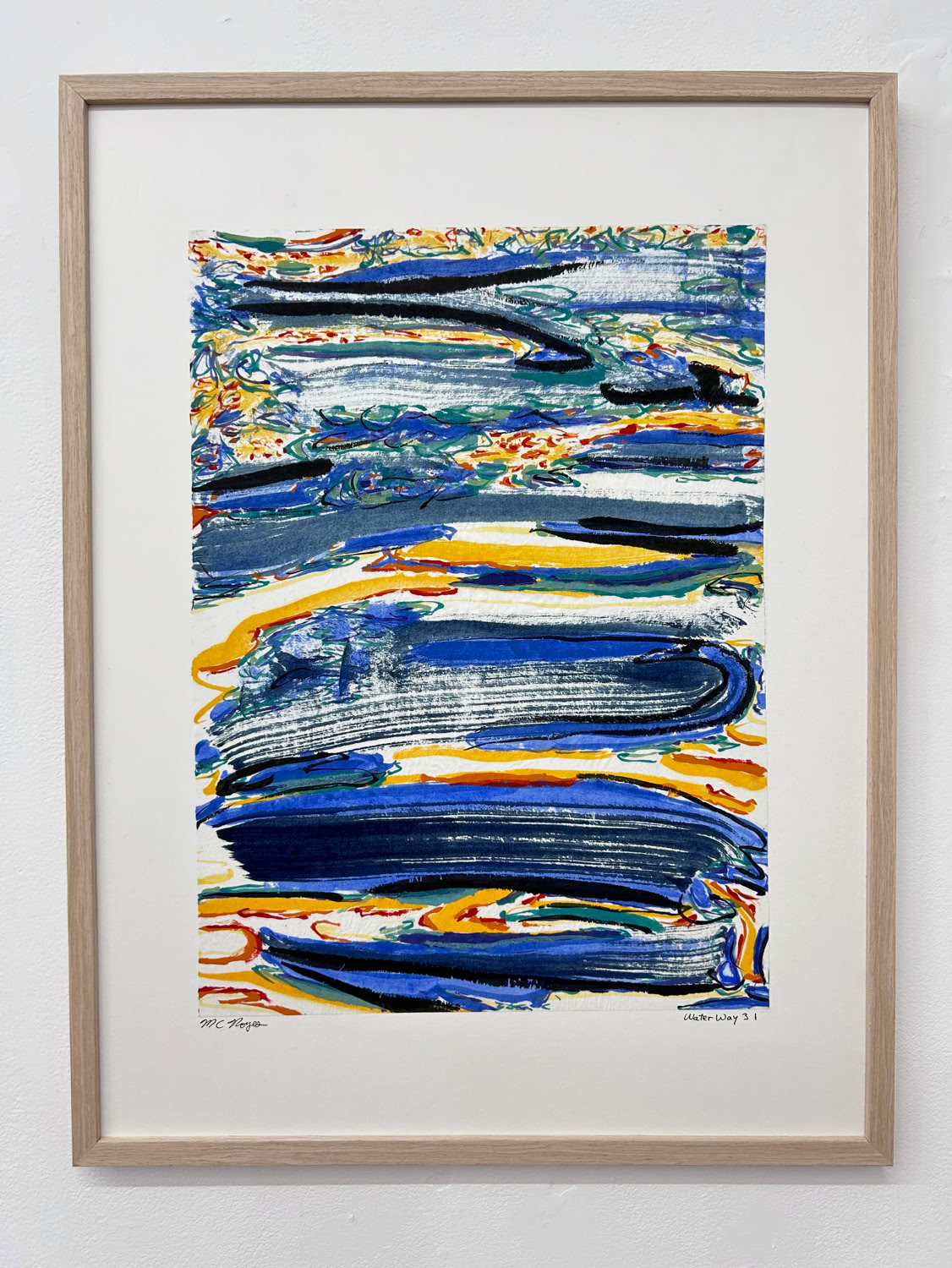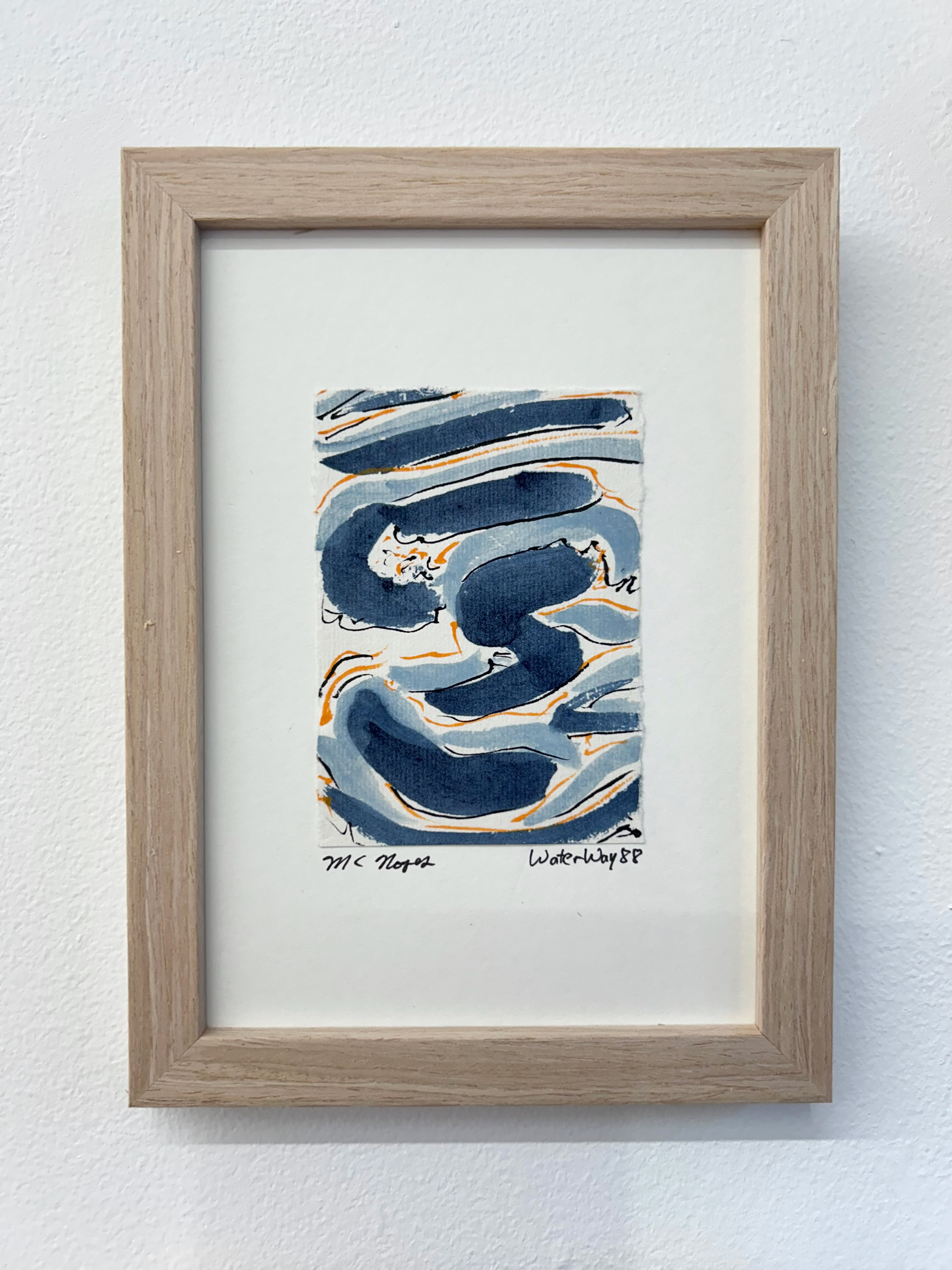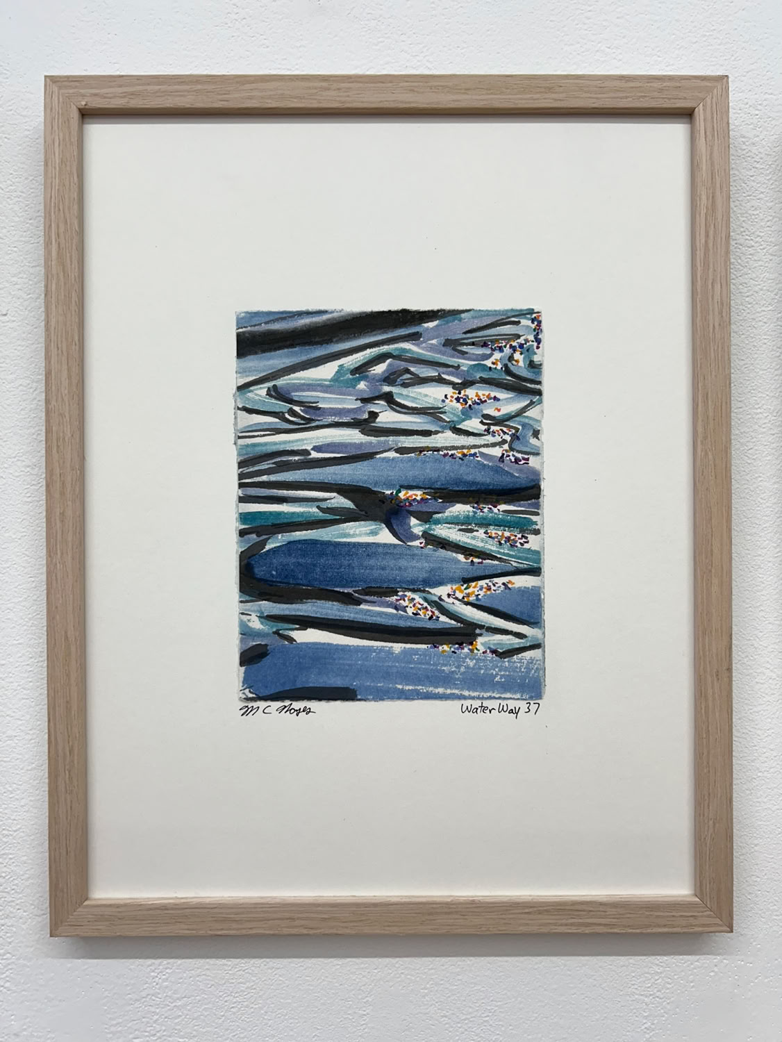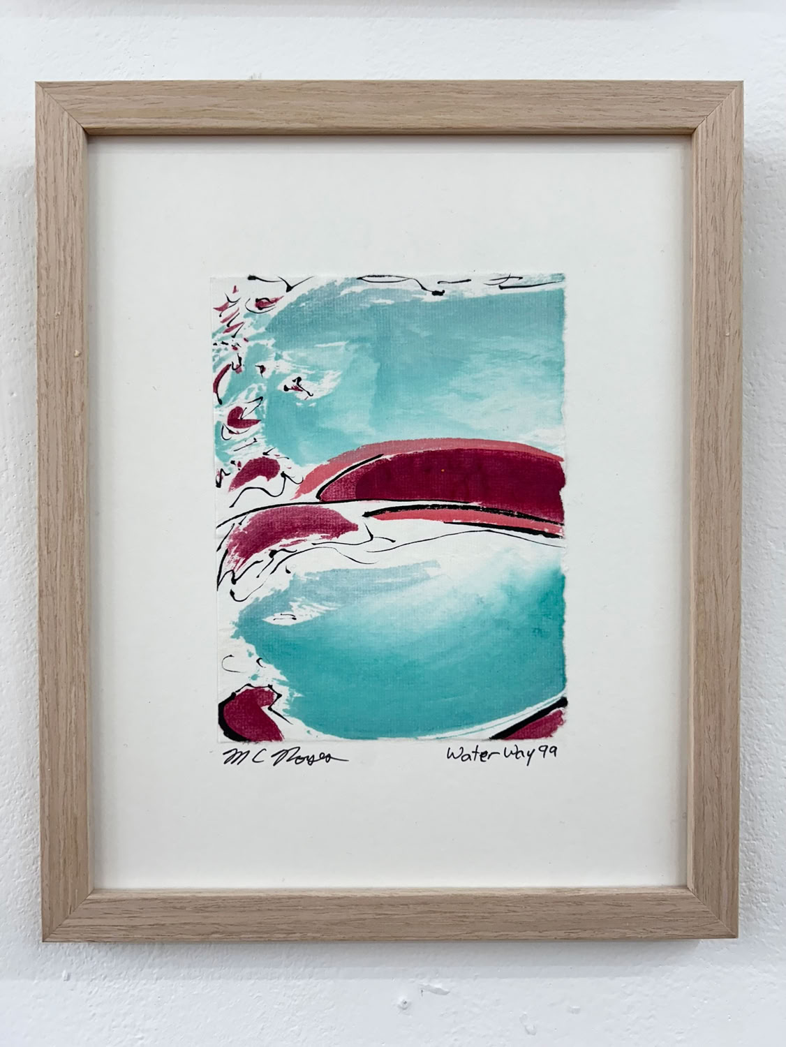 “I am drawn to the immediacy, permanence, and challenge which ink wash painting presents. The traditional techniques are hard to master and involve learning to grind inks to a proper consistency, choosing the paper, brushes, inks and colors to use and then applying one color at a time. The preparation which goes into one brushstroke is most of the process. This is why calligraphy is practiced to gain the skills needed to paint. It is attempting to control the uncontrollable. Practicing the materials and techniques of Chinese ink painting and calligraphy is what I am in pursuit of by creating my Water Way series.” -MC Noyes