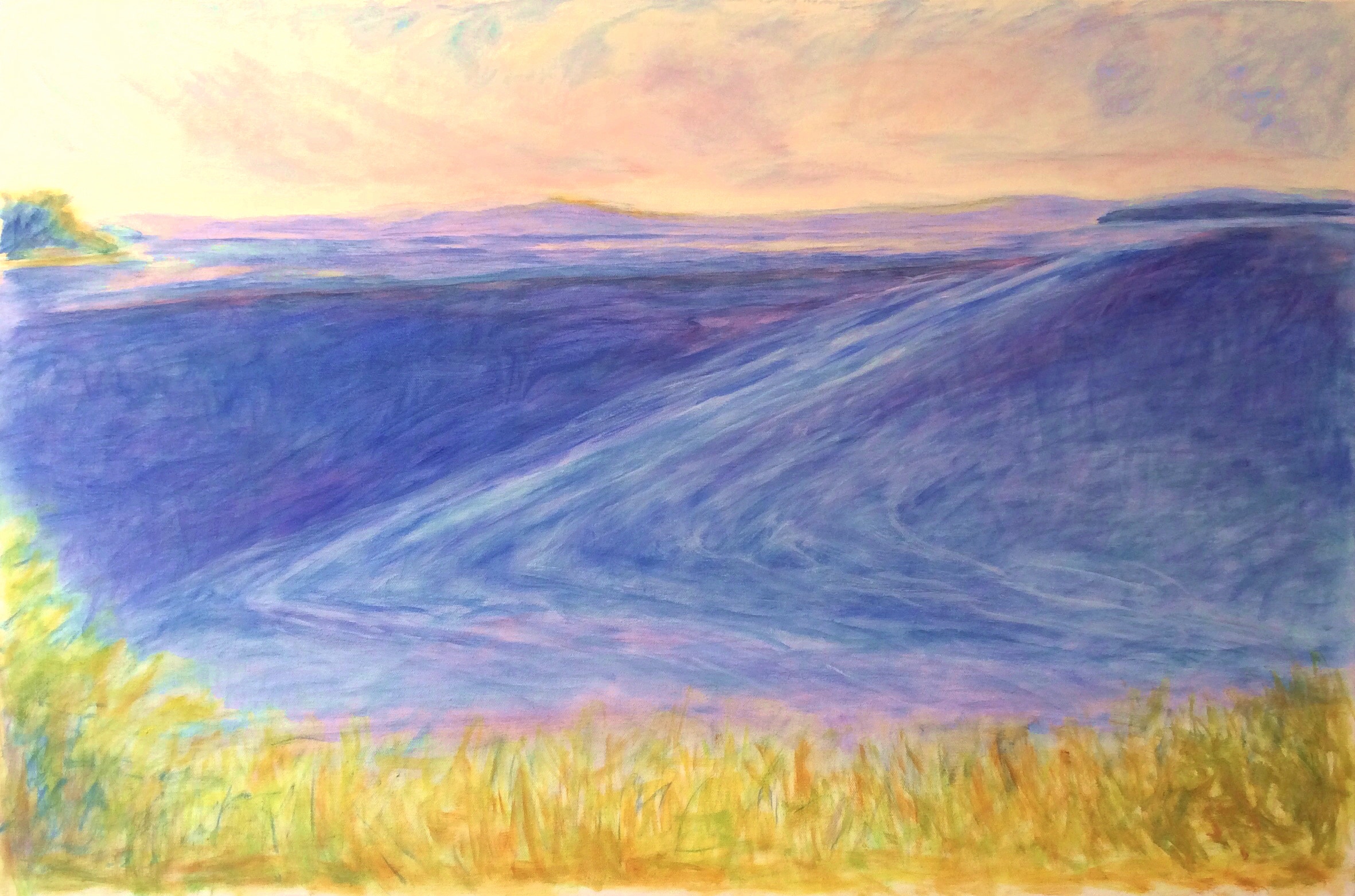 Duo Shows are offered by Canal Street Art Gallery to it’s Represented Artists. Jeanne McMahan & Rodrica Tilley are the fourth set of artists to make a show of this kind. These two painters experience a common passion for sharing the essential beauty, mood, light, colors and textures of the landscape. Both artists work from direct observation of the landscape. Jeanne McMahan in oil paint, and Rodrica Tilley in pastel paint. McMahan looks to the open fields and water with her gestural style and minimal shapes. Tilley, often working in her gardens, finds intimate views with packed together subjects. Both of these painters enjoy a bright, optimistic view of life, and are pleased to share this with you in TWO PAINTERS OUT STANDING IN THEIR FIELDS.